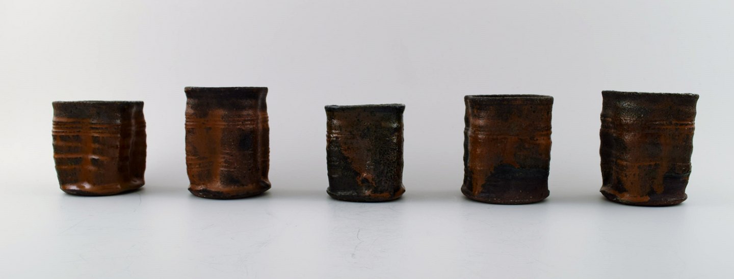 Gutte Eriksen, own workshop, twelve ceramic cups. 1950s. Stamped. Measures 9 x 7 cm. In perfect condition.