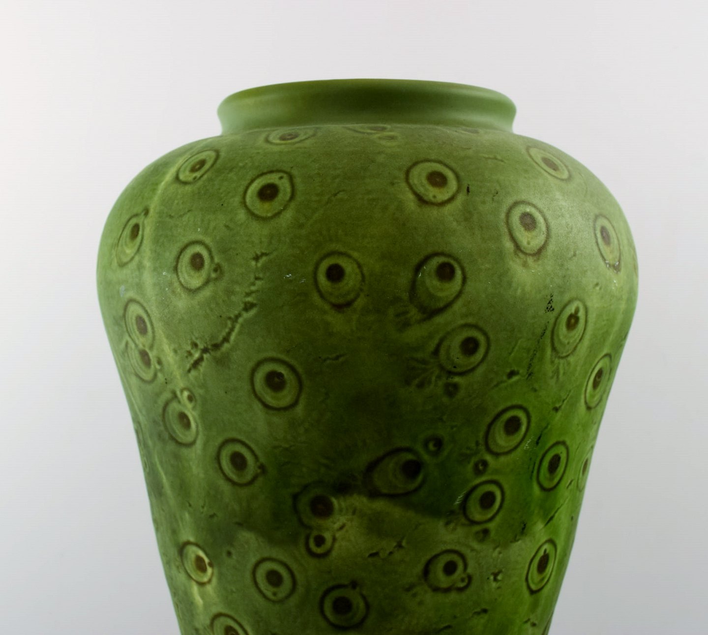 Kähler, HAK, stor glaseret stentøjsvase. Smuk grøn glasur. 1930/40´erne. Stemplet. Måler : 35 cm. x 23 cm. I perfekt stand.
