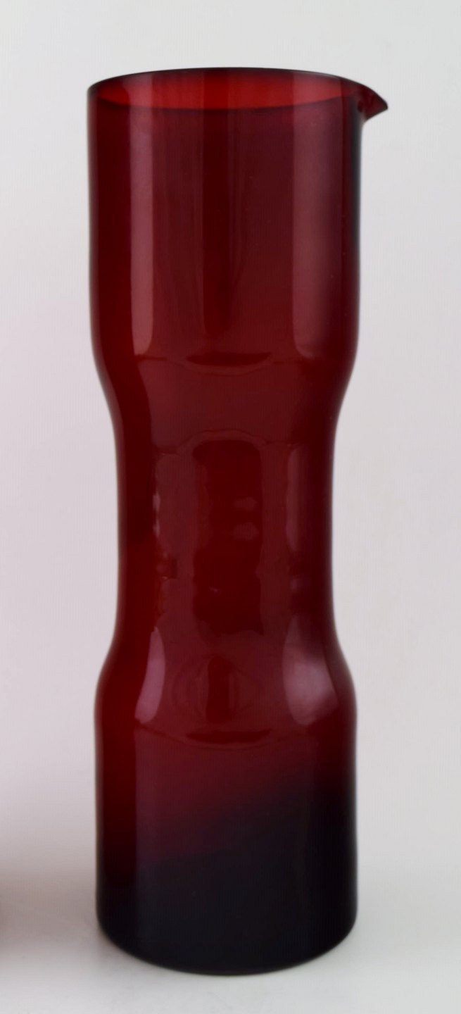 Kaj Franck (Finnish, 1911-1989) Nuutajärvi Glass Works, Finland, art glass. Two pitchers of red art glass. Finland 1960s / 70s. In perfect condition. Measures: 27 cm. x 9 cm. Unstamped.