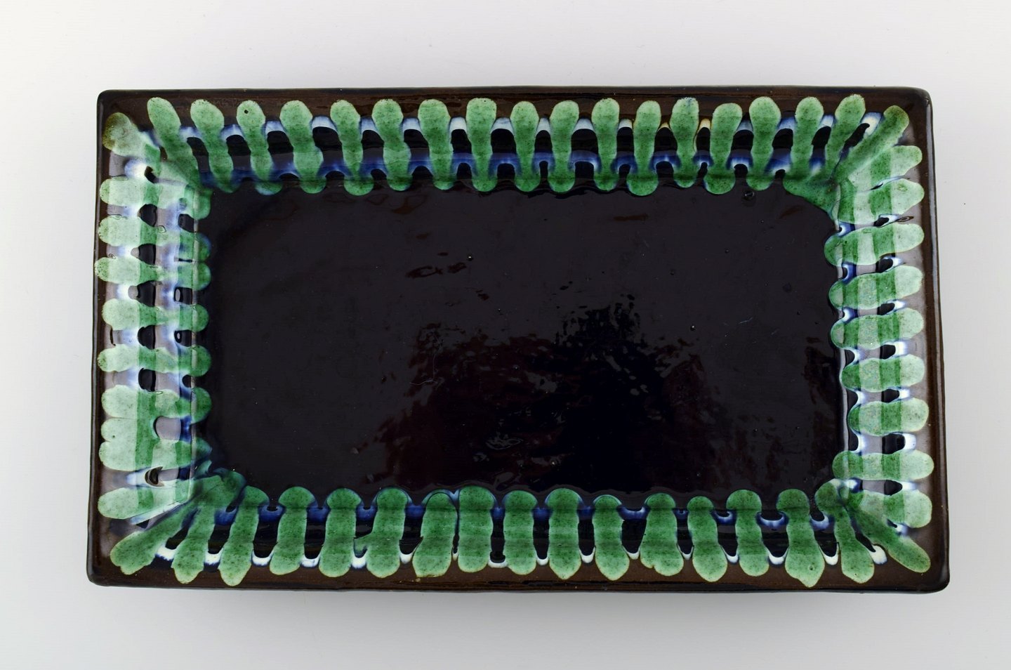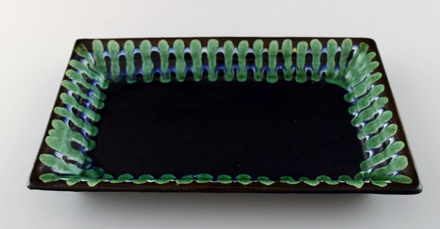 Kähler, HAK, glaseret stentøjsbakke, 1940/50'erne. Flot glasur. Måler 28 cm. x 16 cm. 4 cm. højt. Stemplet. I perfekt stand.
