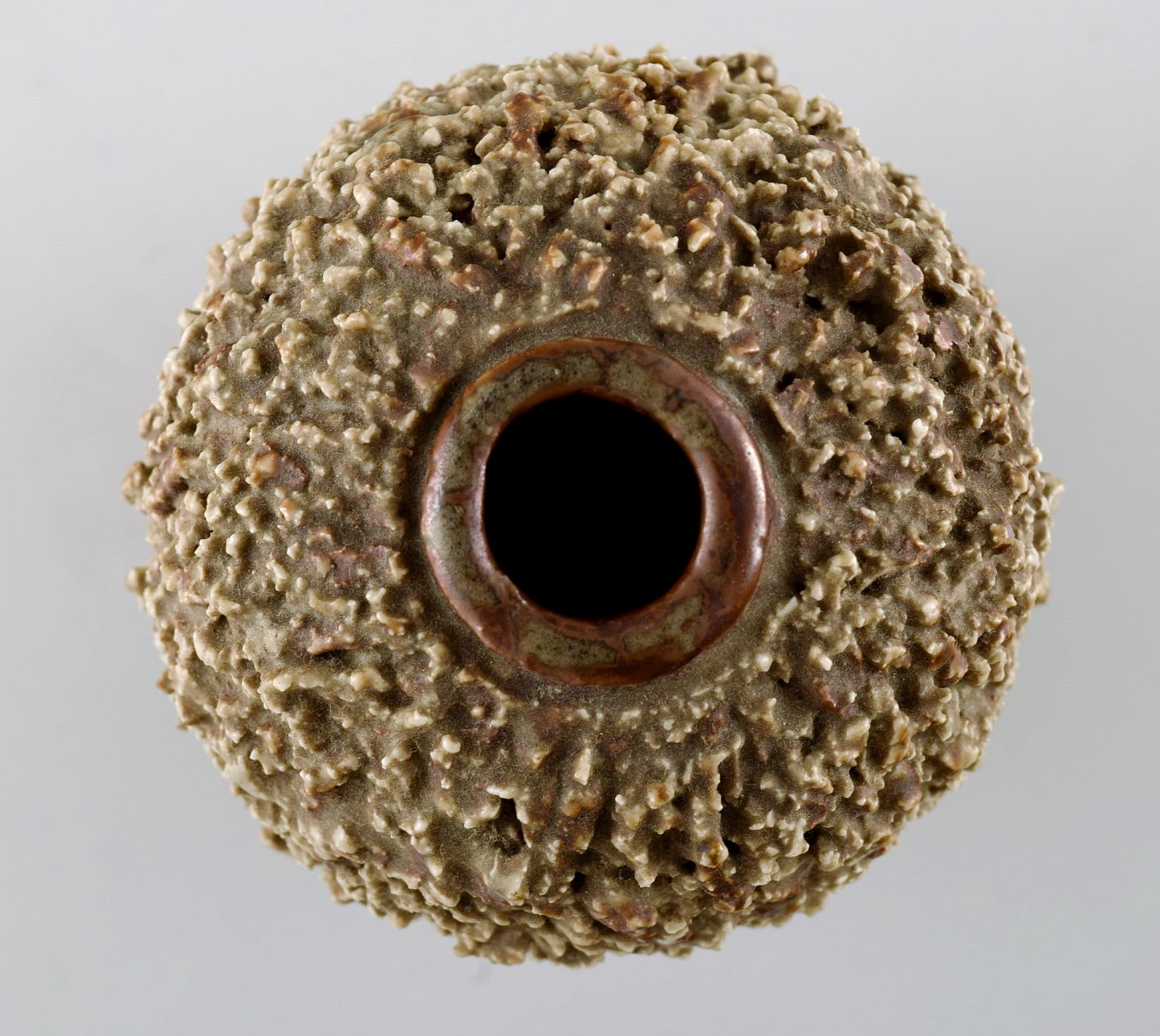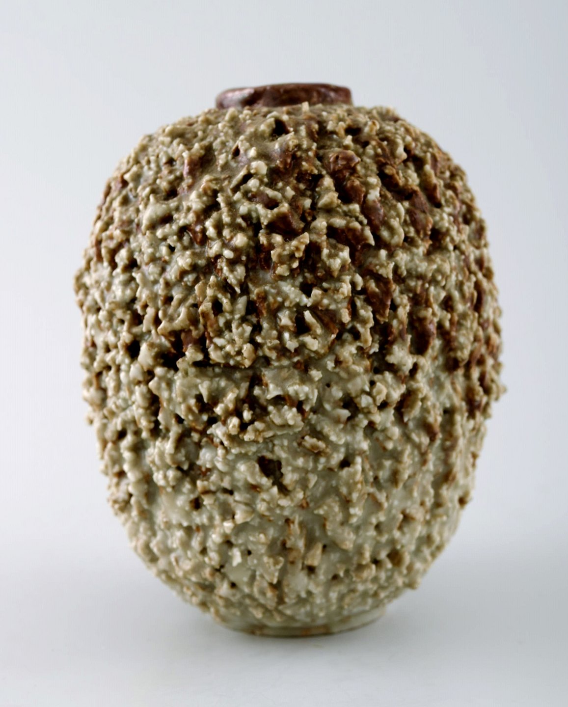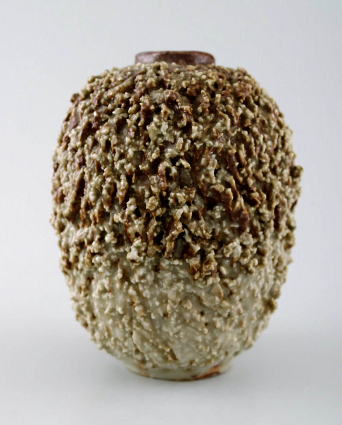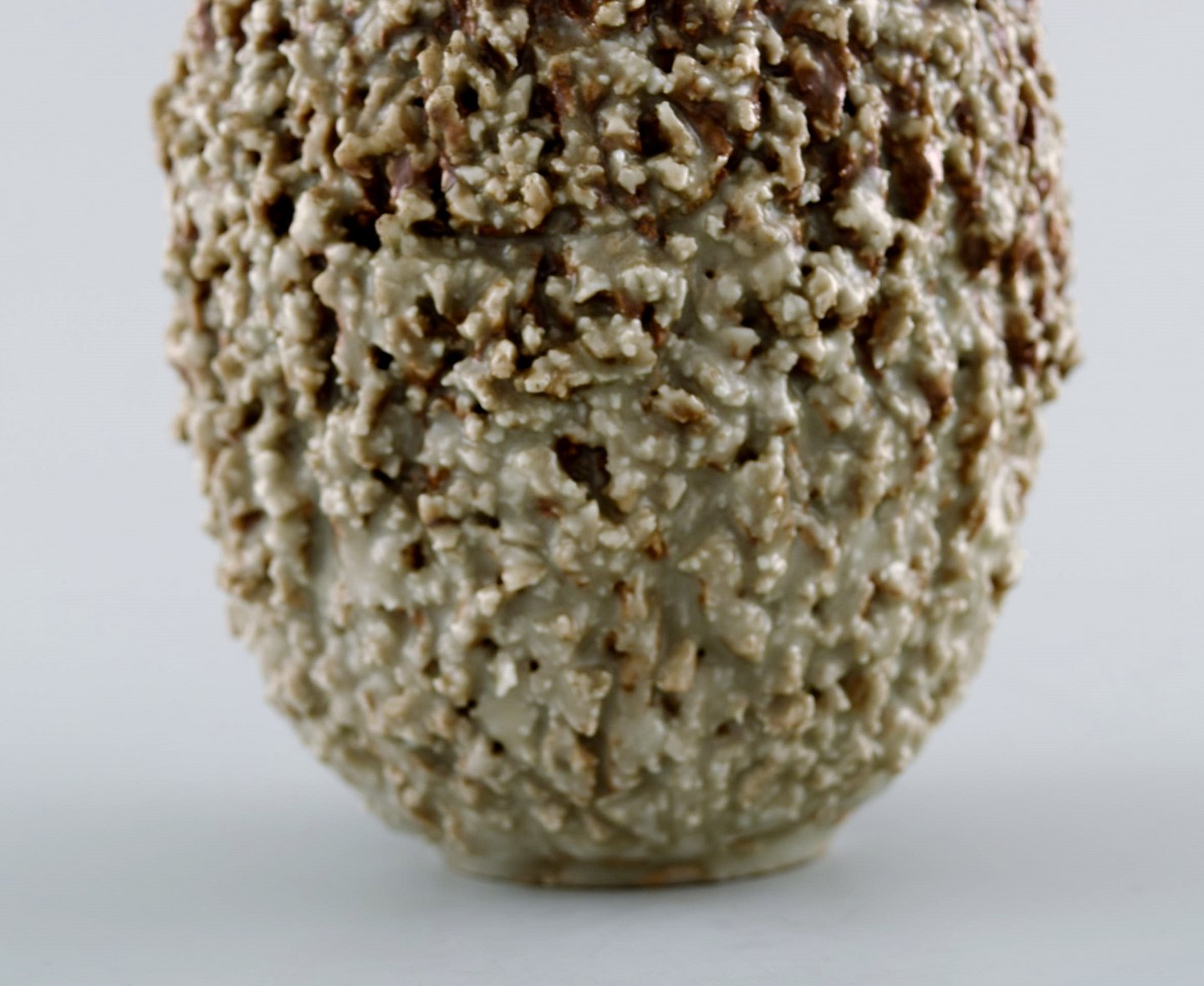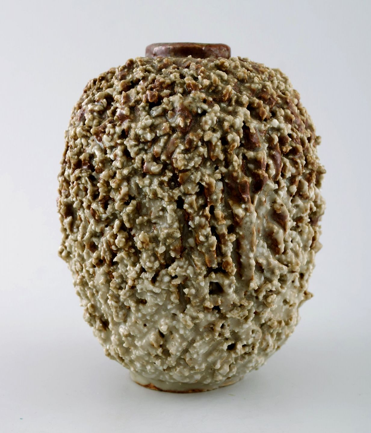 Rörstrand / Rorstrand Gunnar Nylund "Chamotte" vase. Hedgehog vase. 11 cm. high. 10 cm. in diameter. Rare glaze in earthy colors. Stamped. In perfect condition.