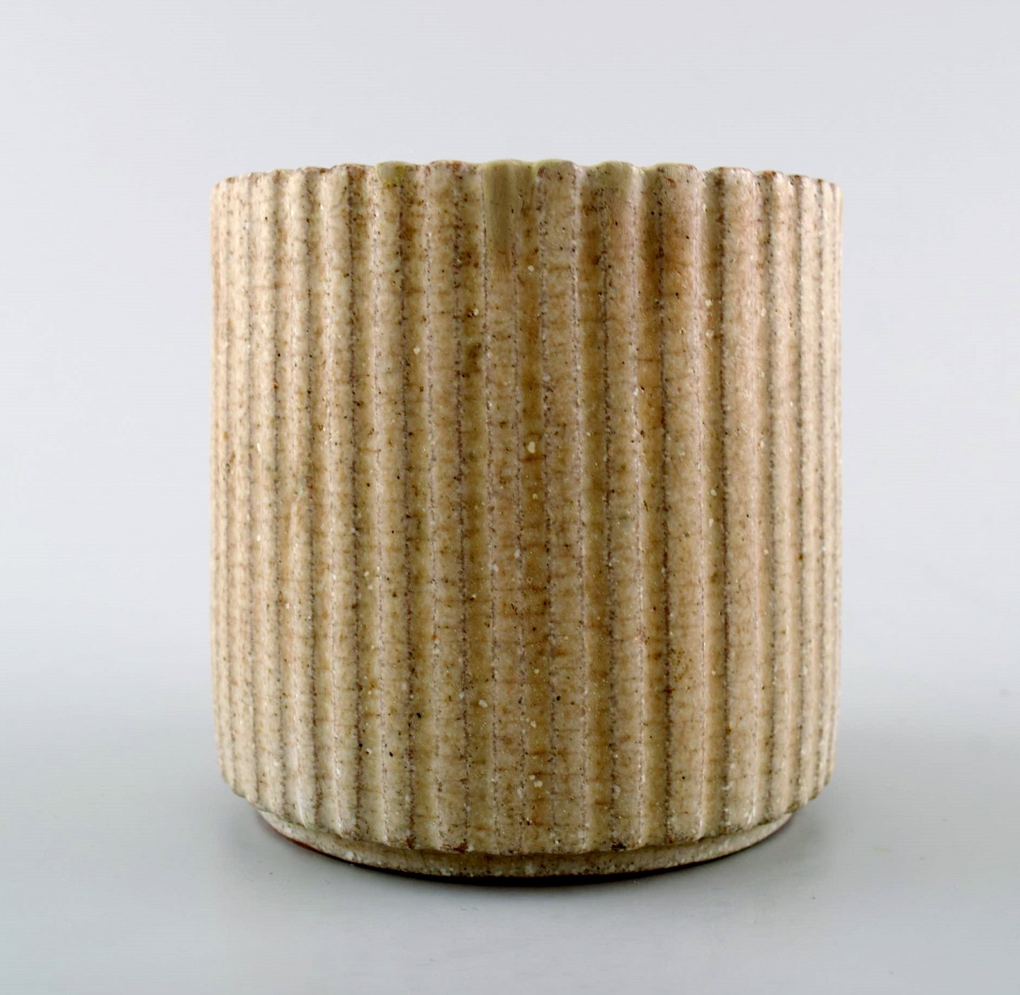 Arne Bang. Ceramic vase. Mid 20 c. Marked AB 129. Beautiful glaze in sand shades. In perfect condition. Measures 8.5 cm. x 8 cm.