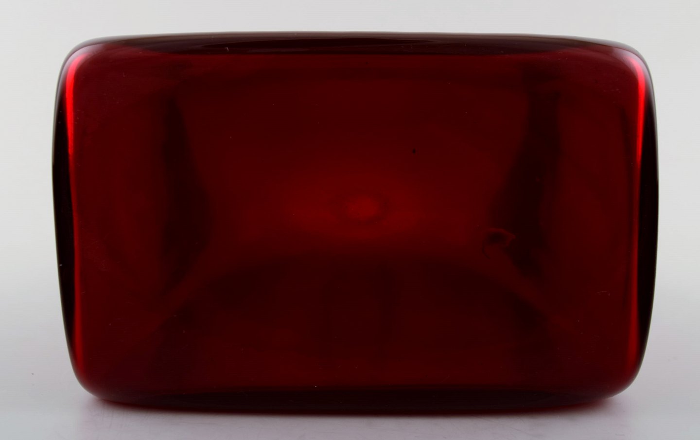 Riihimaki Riihimaen, Finland, karaffel af rødt kunstglas. 1960'erne. finsk design. Måler: 22 cm. x 11 cm. I perfekt stand.