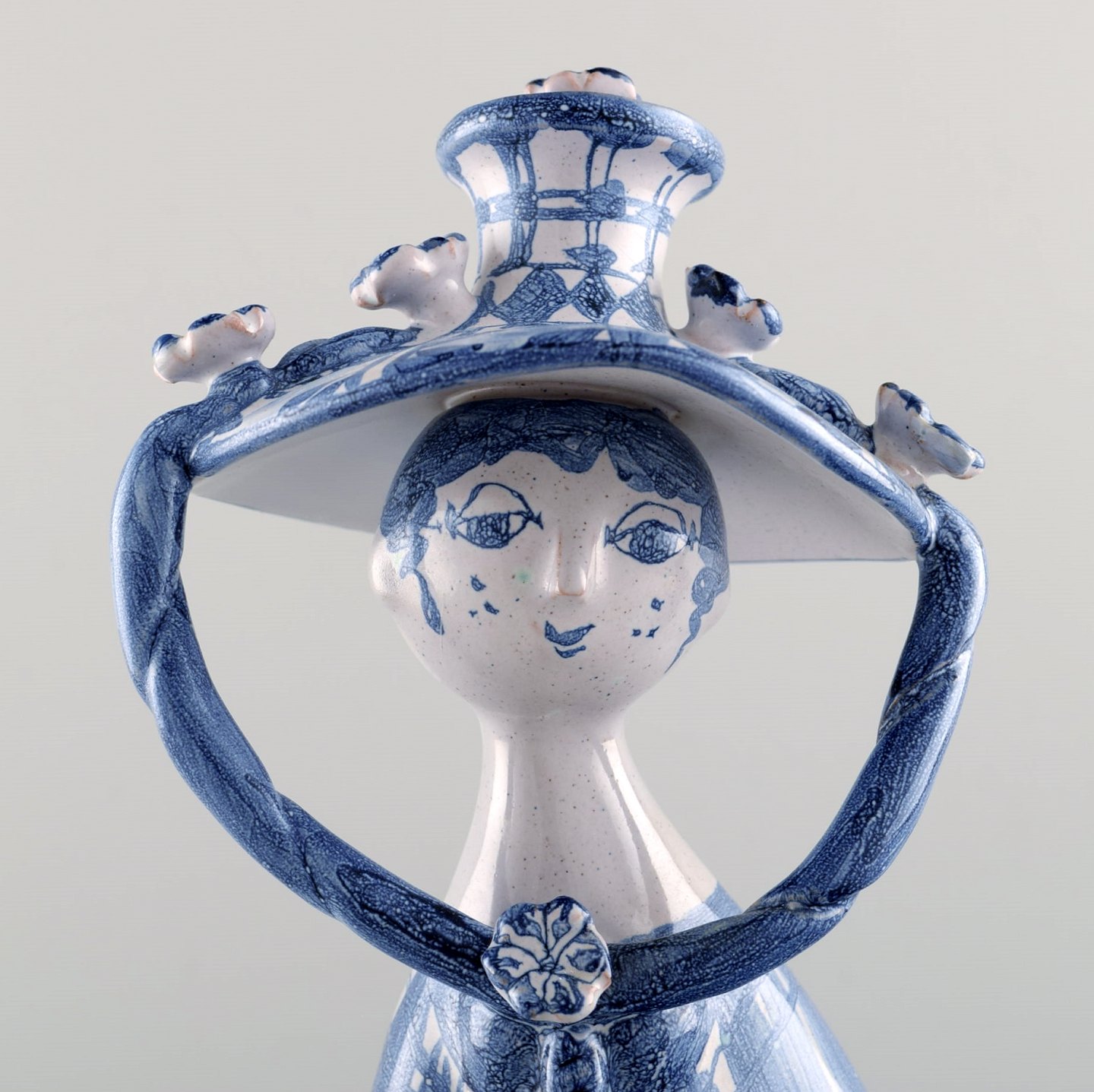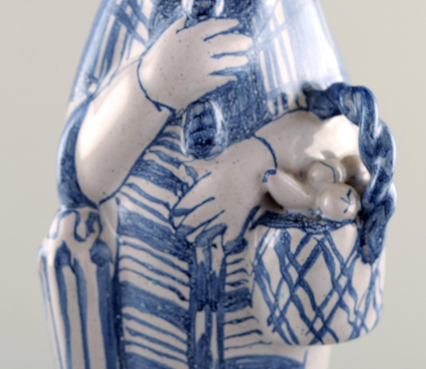 Bjørn Wiinblad unik keramik figur fra Det blå hus. "Efterår" i blå "Årstiderne" fra 1970. 32,5 cm. høj. Perfekt stand. Jeg har alle 4 figurer fra "Årstiderne".