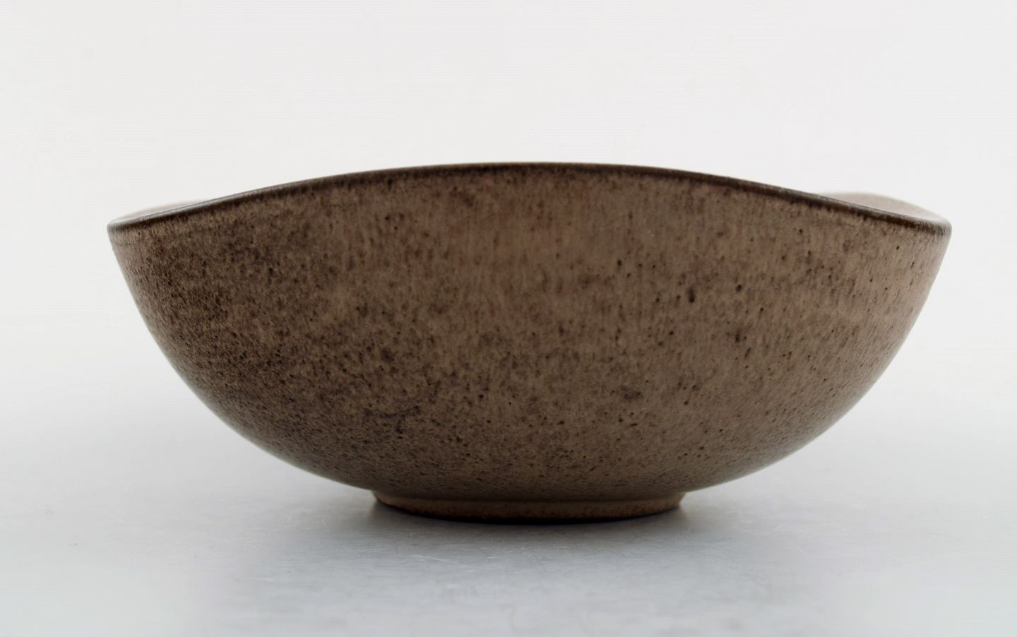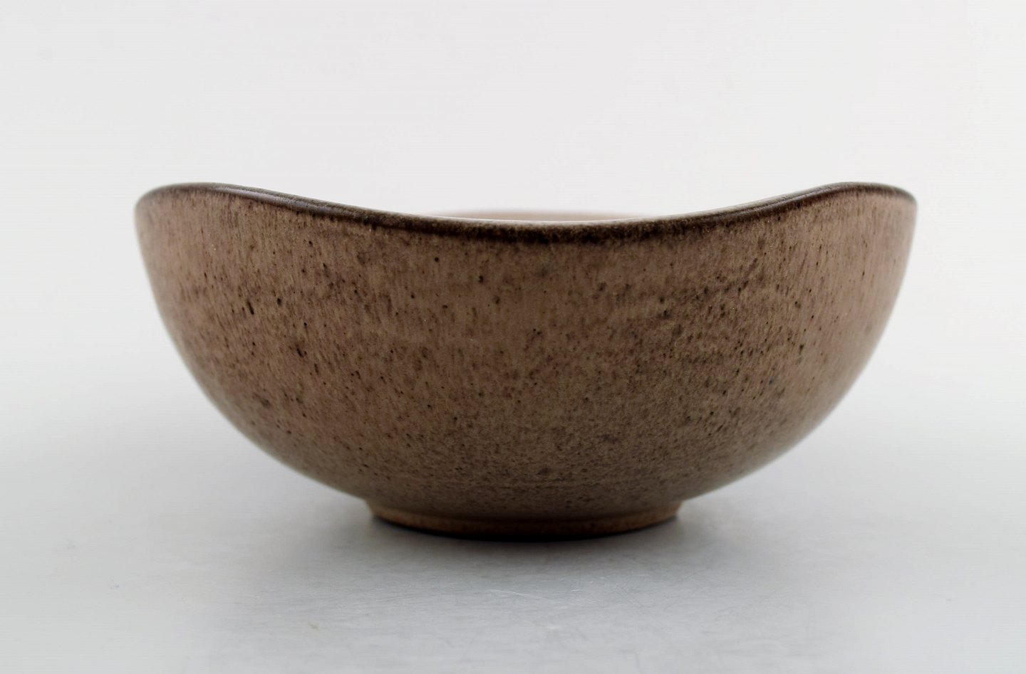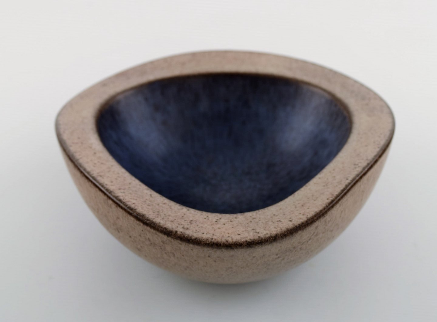 Helge Østerberg: Skål af keramik, spættet glasur, indvendigt mørkeblå. Signeret Ø, Denmark. 1960´erne. Diameter 13 cm. Højde. 5 cm. I perfekt stand.
