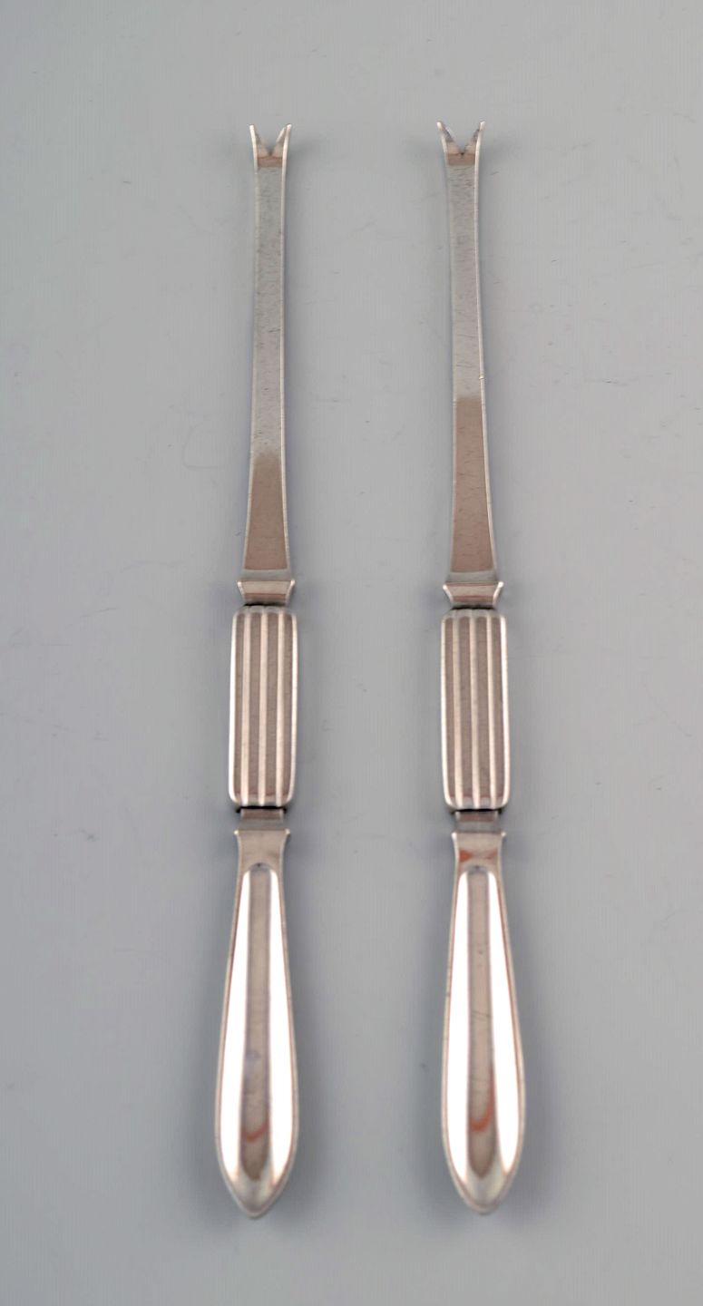 Two Georg Jensen Silver Bernadotte lobster forks. Measures: 19 cm. In perfect condition. Stamped 1945-51.