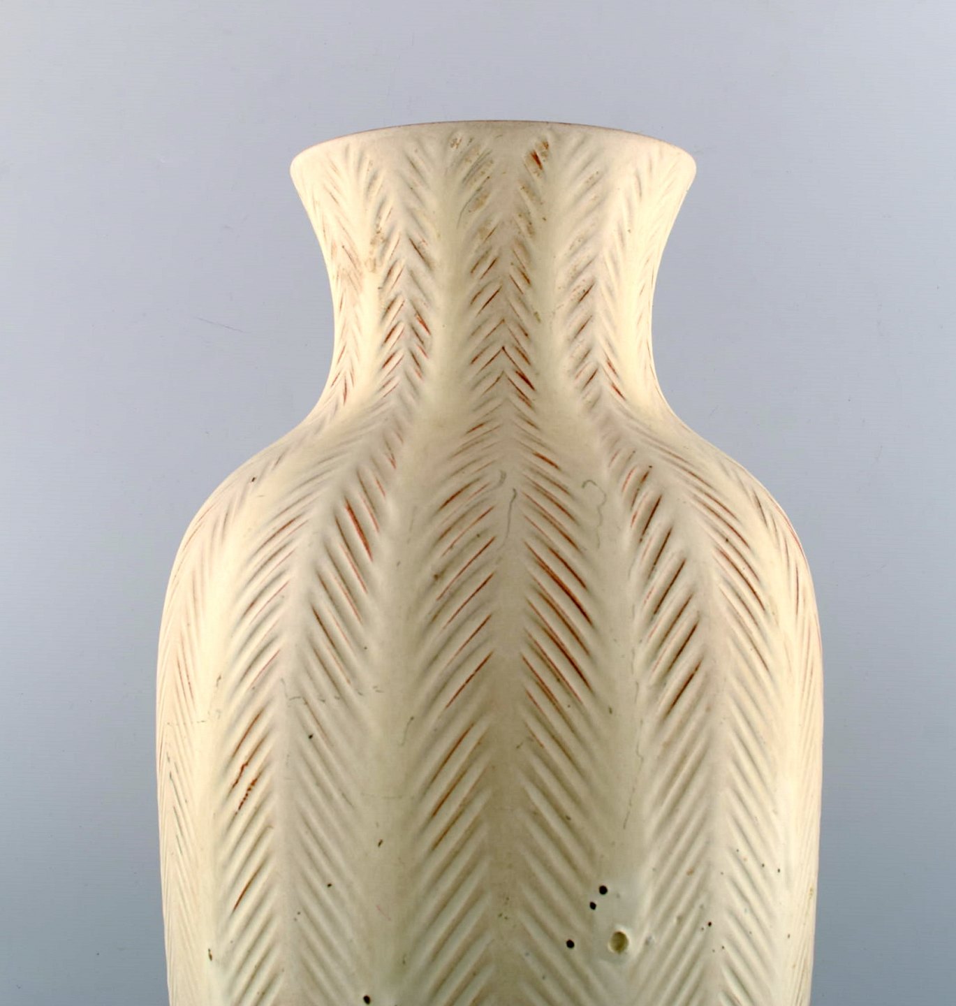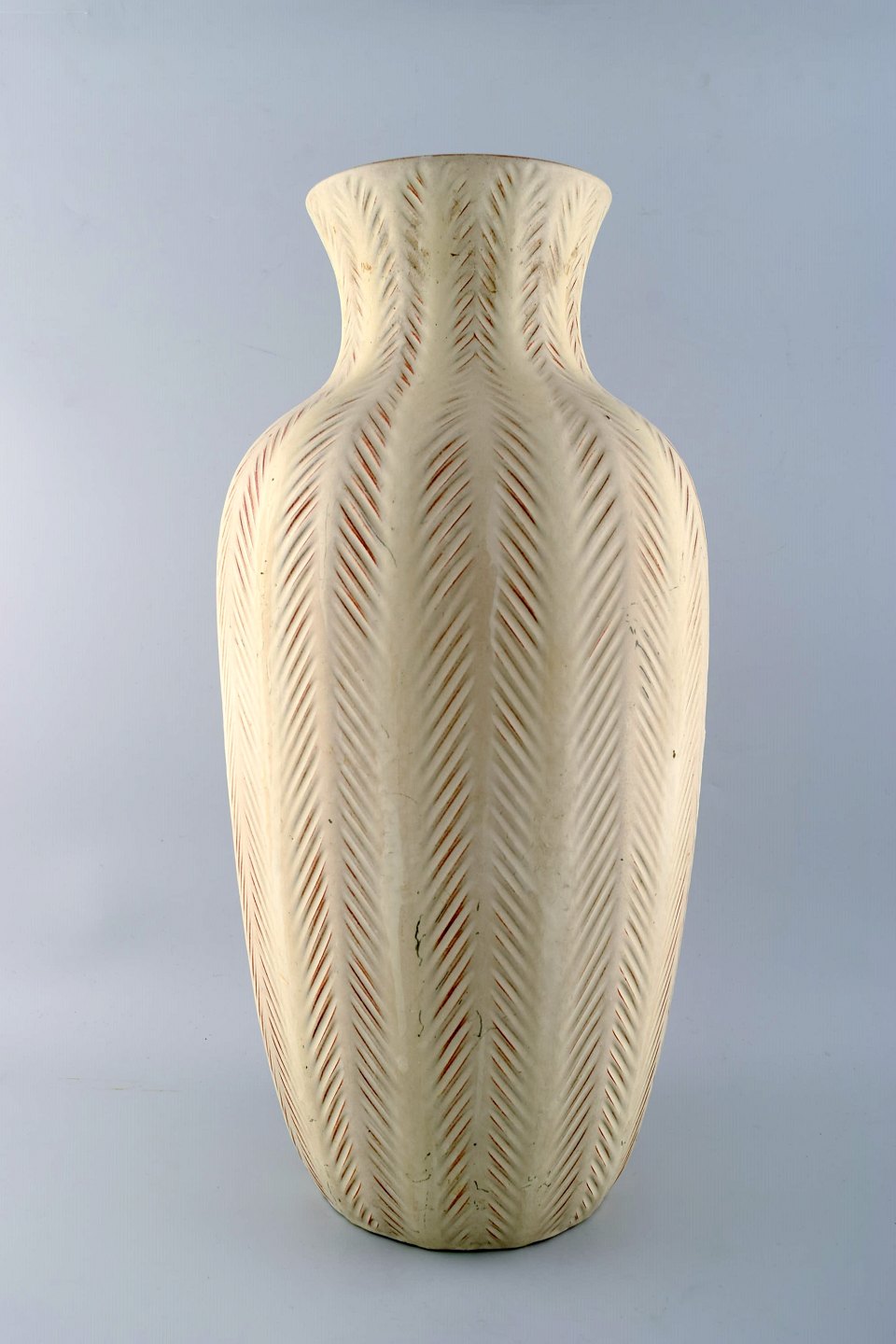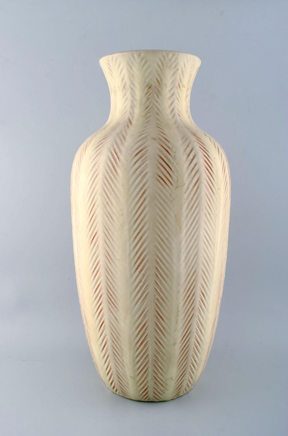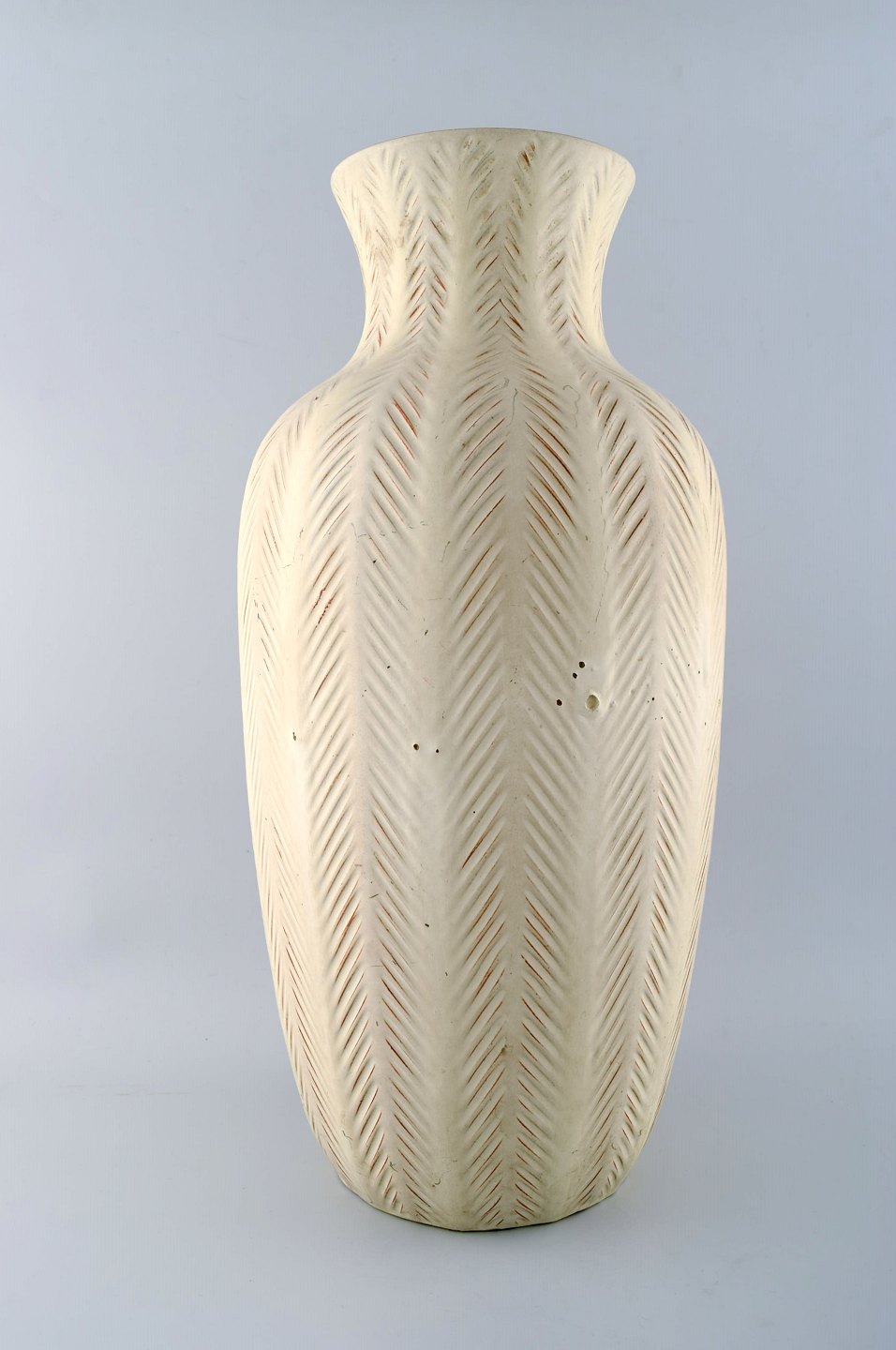 Anna-Lisa Thomson for Upsala-Ekeby ceramic floor vase. Fluted body with light glaze. Sweden mid-20th century. In perfect condition. Measures 49 x 24 cm. Stamped. Ekeby, A.L.T.