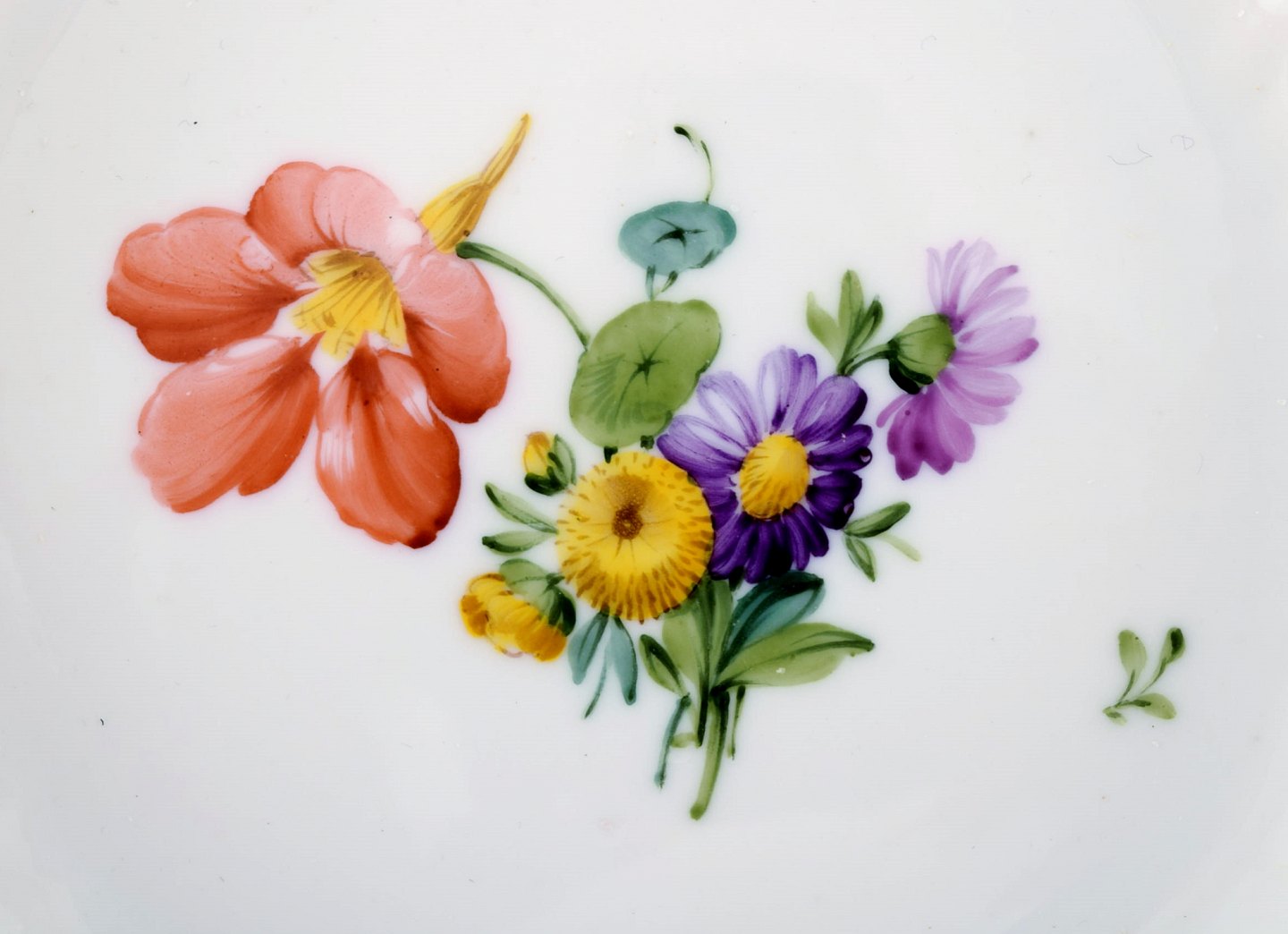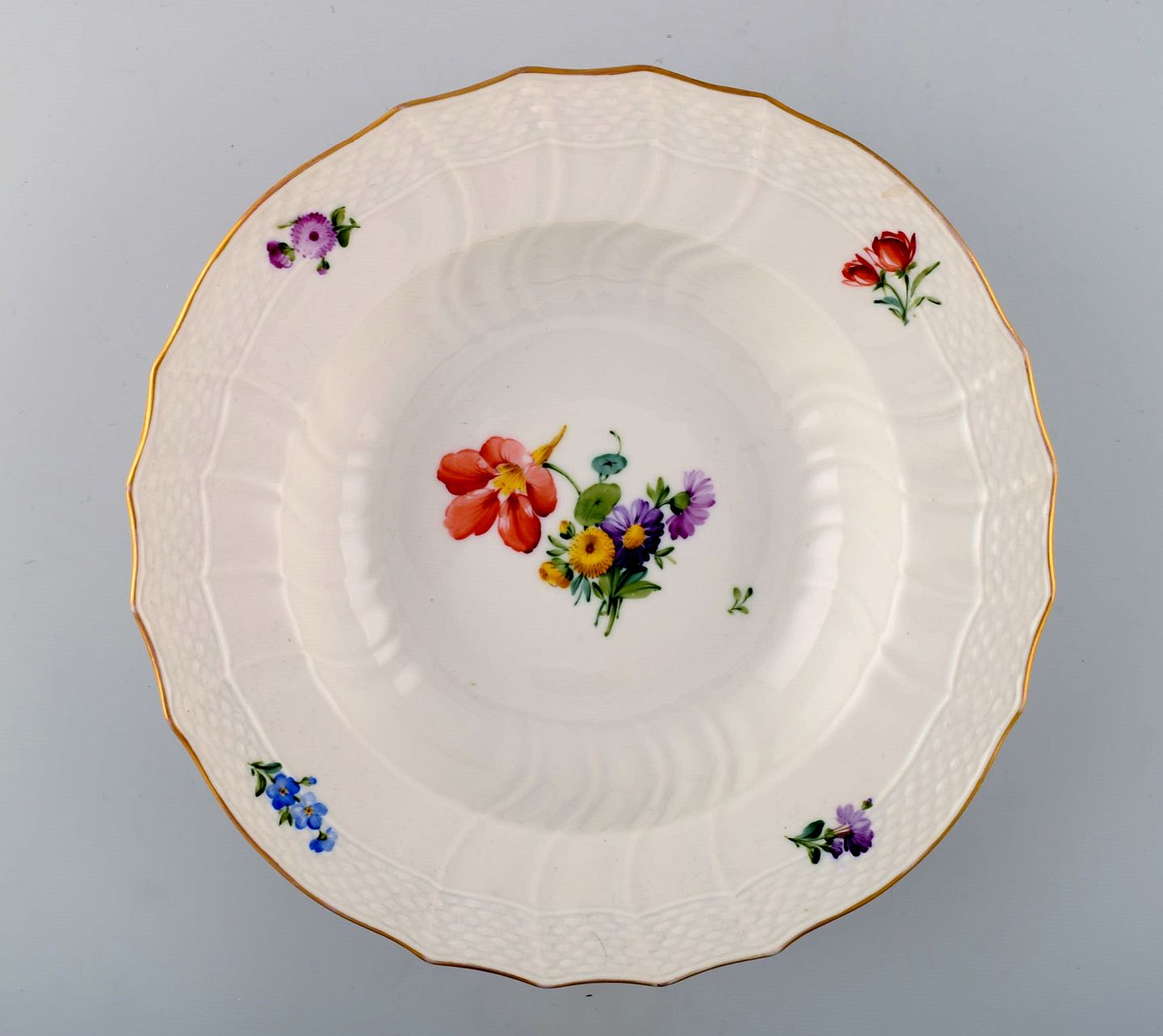 Royal Copenhagen Saxon Flower, 6 large soup dishes Decoration Number 493/1614. 2nd. assortment. Measures 25.5 cm. x 6 cm. deep. Perfect condition.