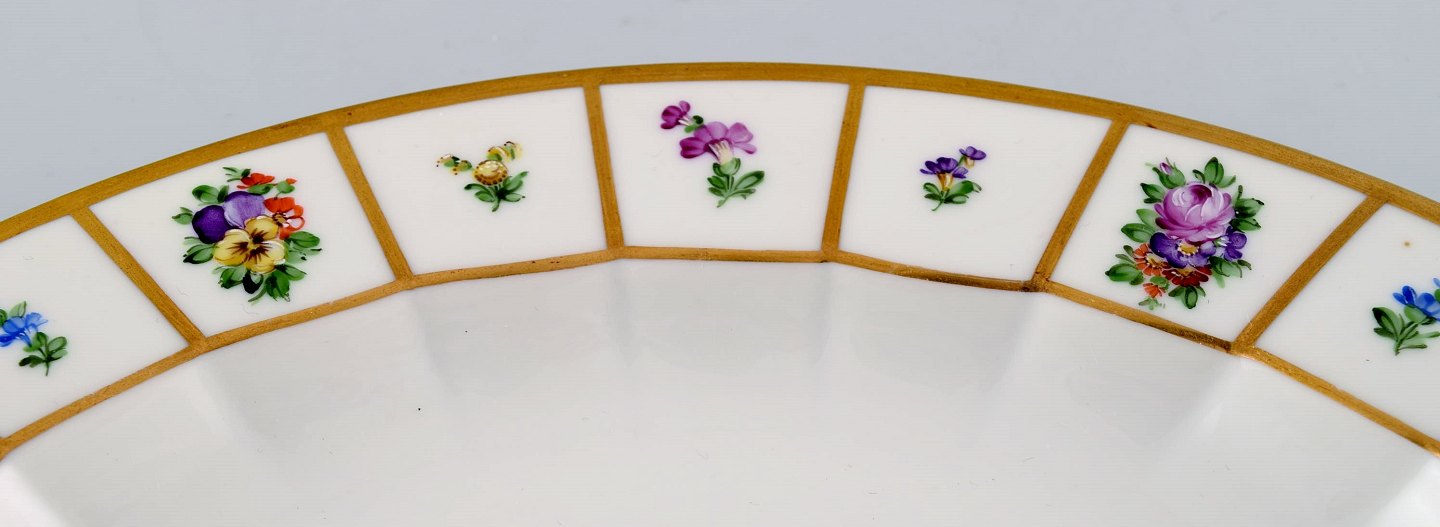 Henriette, Kongelig porcelæn. Royal Copenhagen Henriette, håndmalet porcelæn med guldkant. Kgl. Henriette, ovalt serveringsfad, nr. 444/8605.