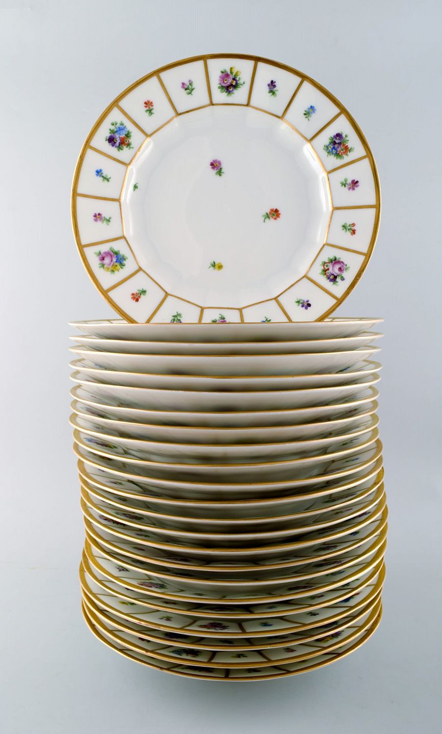 23 Royal Copenhagen Henriette. Hand painted porcelain. Henriette 23 dinner plates no. 444/8549. Diameter 25 cm. In perfect condition. 1st. factory quality.