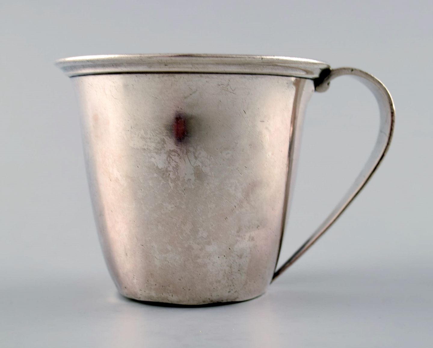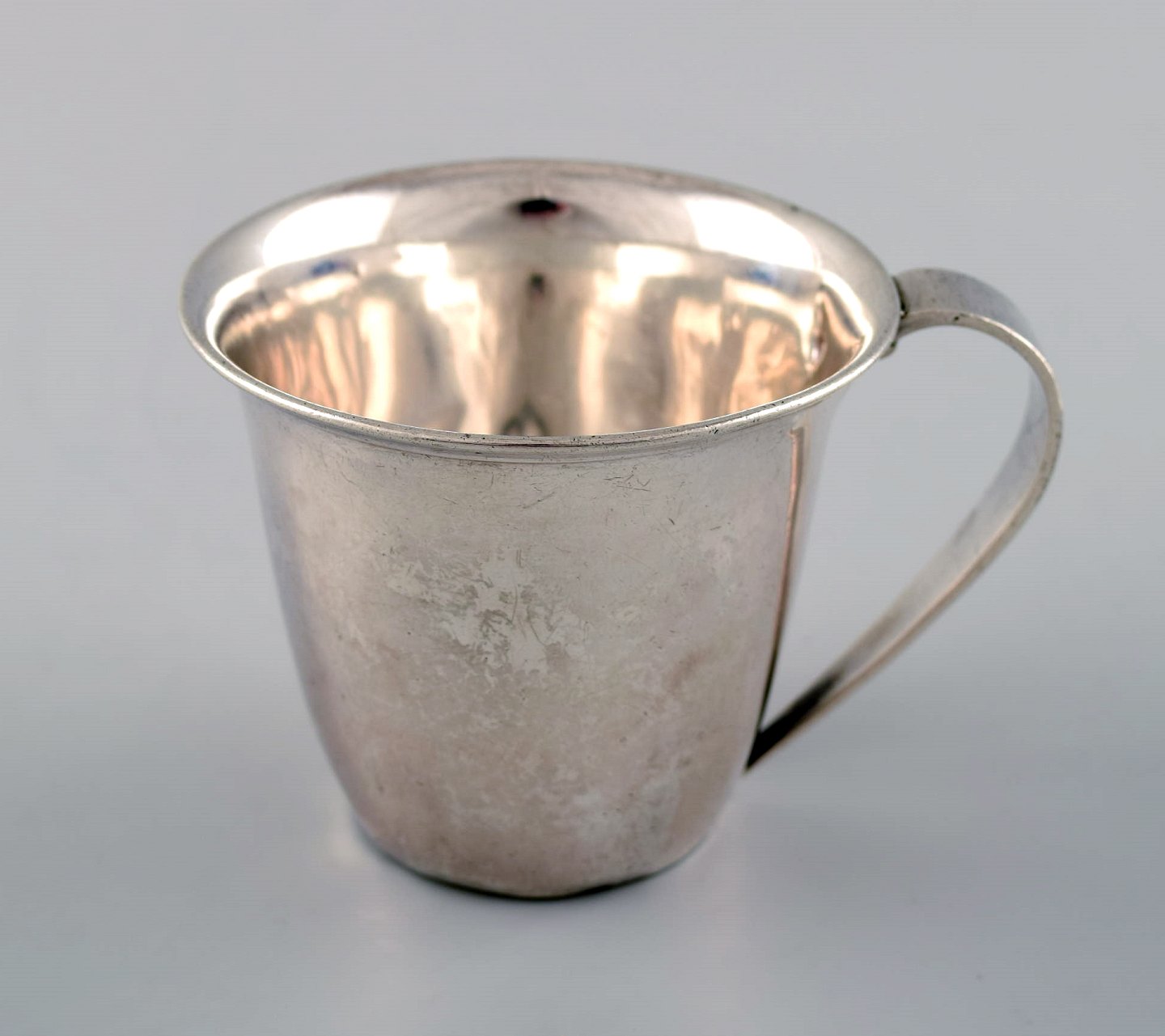 Barnebæger med hank, udført hos Evald Nielsen af hammerslået sterlingsølv.