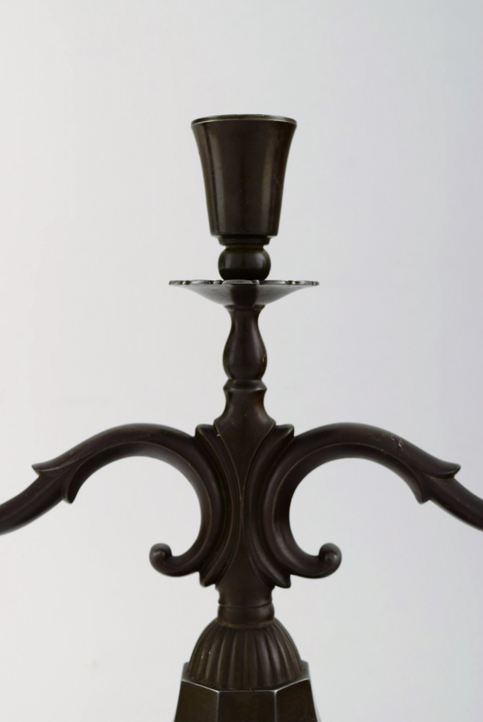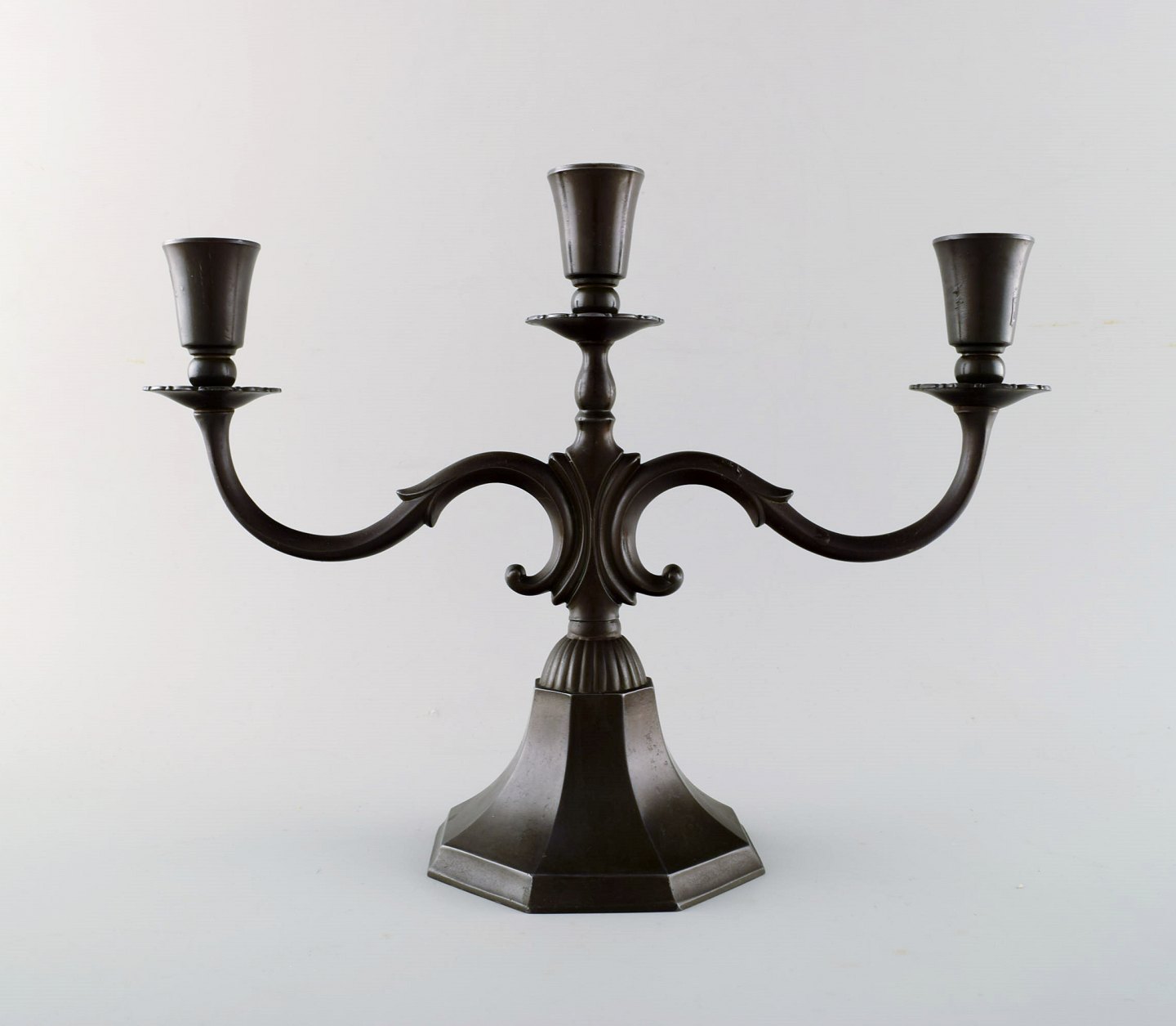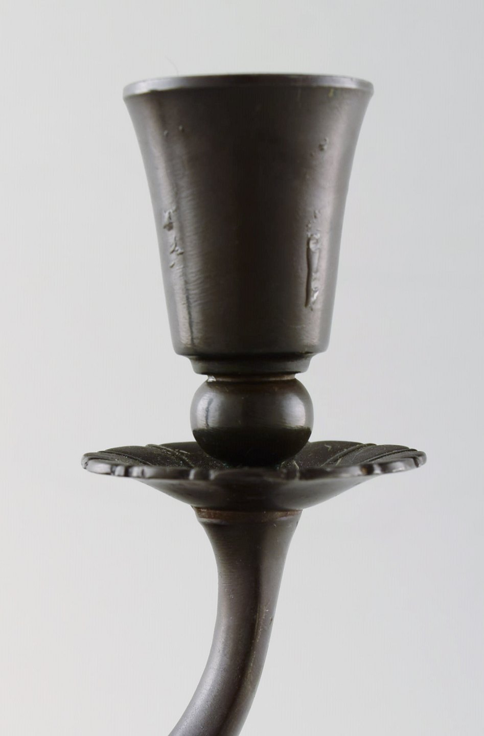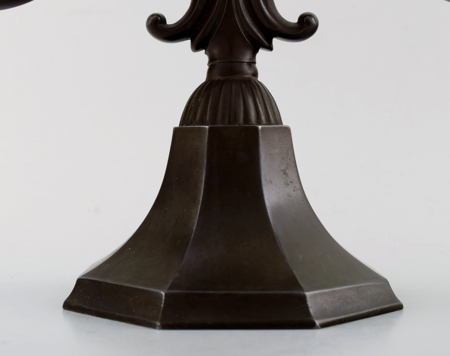 Just Andersen art deco par "disko" metal lysestager, nummer 1237. Stemplet. Fremstår i flot stand. Måler 23 x 30 cm.