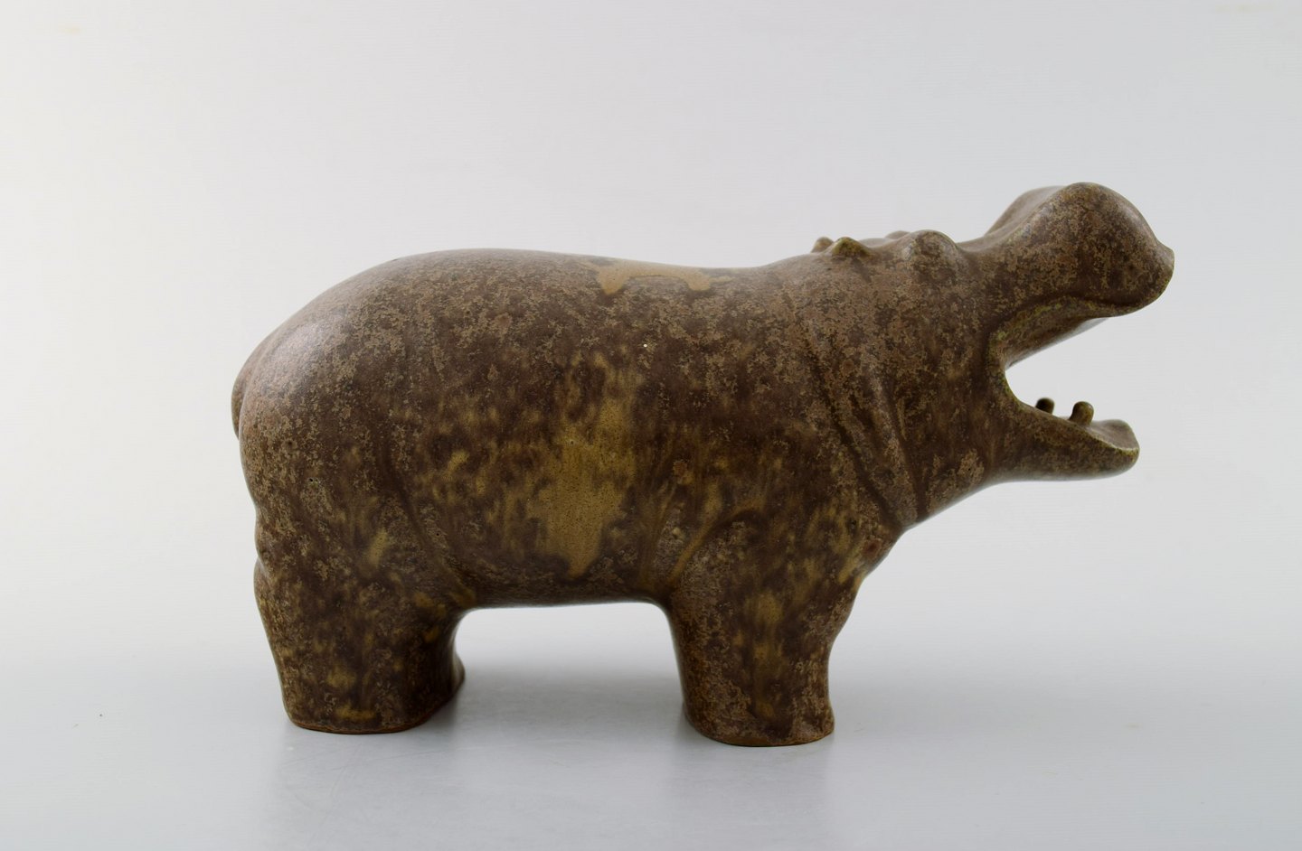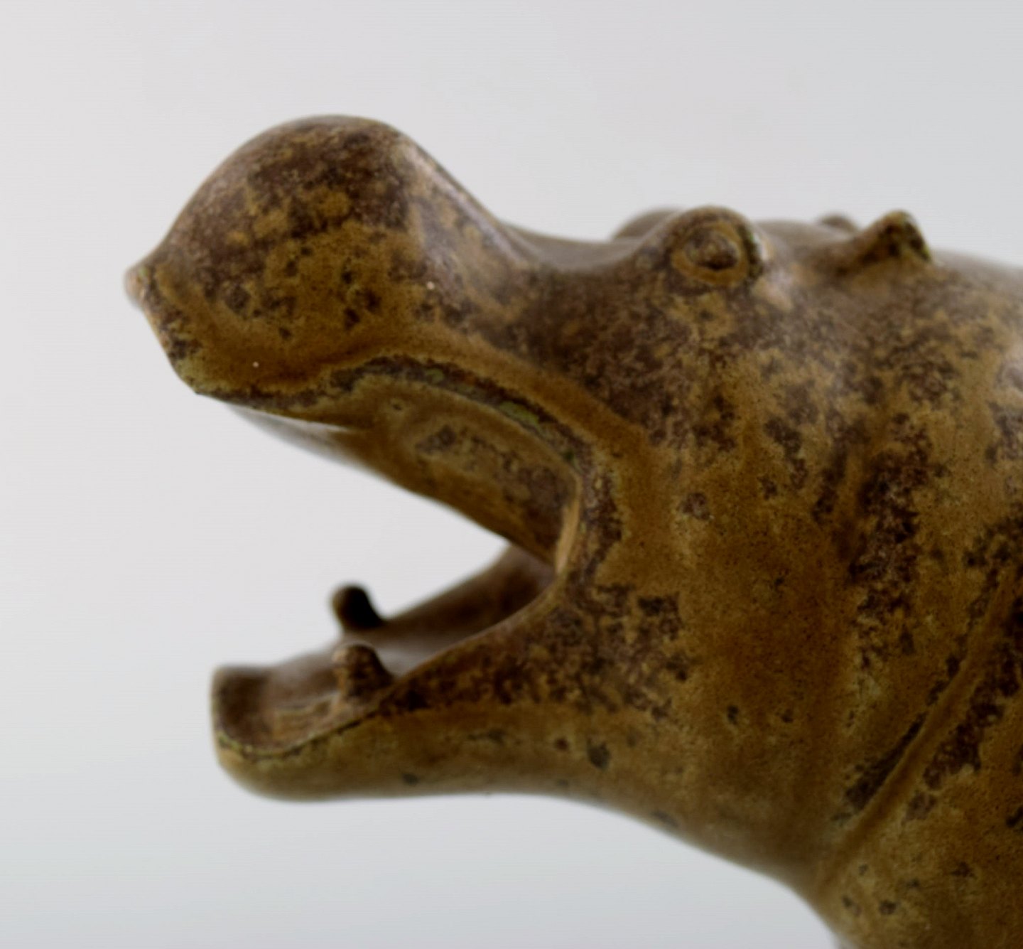Arne Bang. Ceramics, rare hippopotamus. Stemplet AB. 110. Beautiful glaze in brown shades. In perfect condition. Measures: 18 x 9 cm.