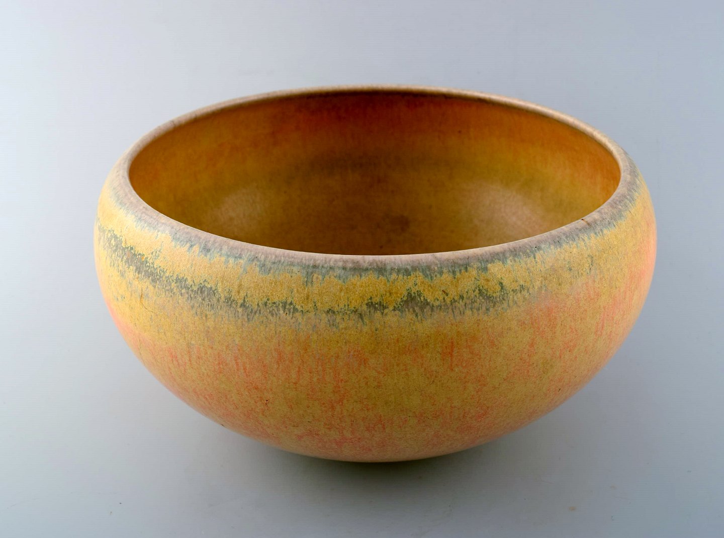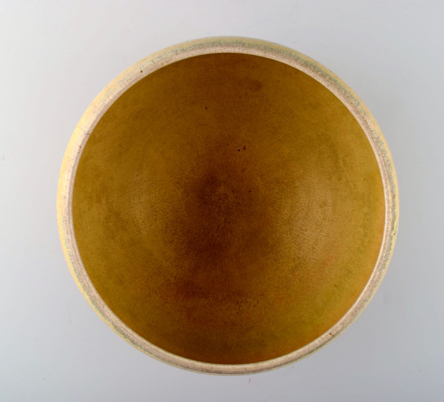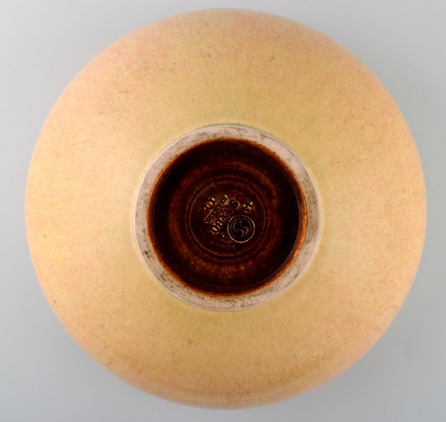 Saxbo. Skål af stentøj i moderne design, glasur i gule nuancer. Stemplet Saxbo. Ying Yang, Modelnummer 94. Måler 25 x 14 cm. I perfekt stand. 1. sortering.