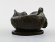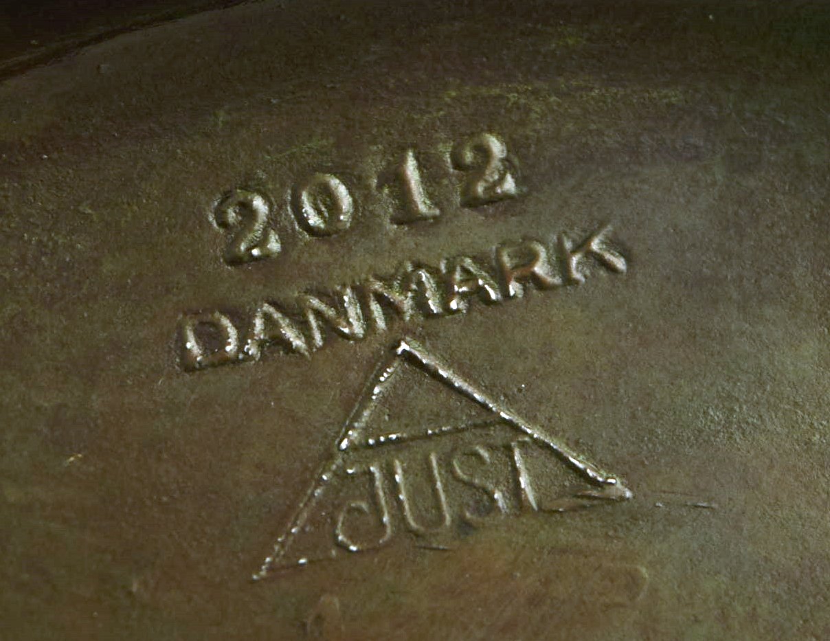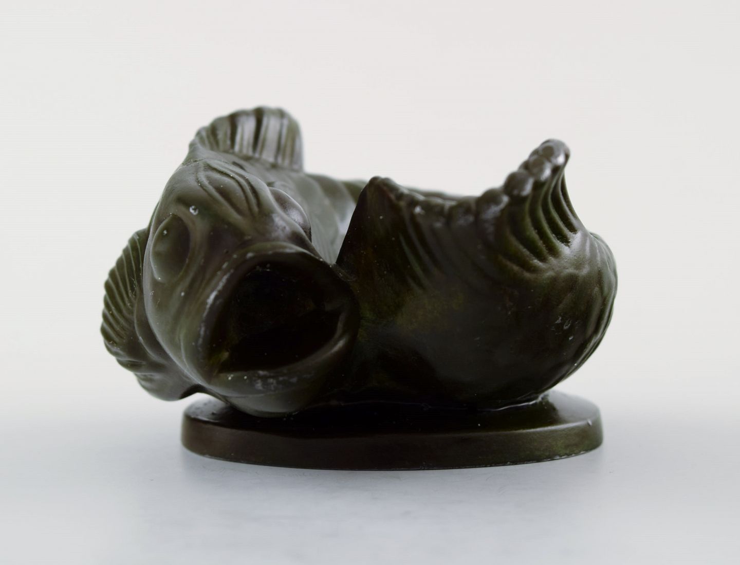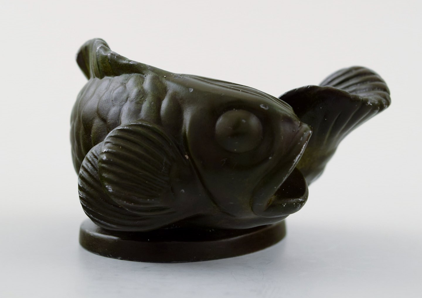 Just Andersen (1884-1943). Figur i disko metal i form af fisk. 1930/40´erne. Stemplet på bagsiden Just A, D 2012. Måler : 6,5 cm. x 4,5 cm. I god stand, brugspræg.