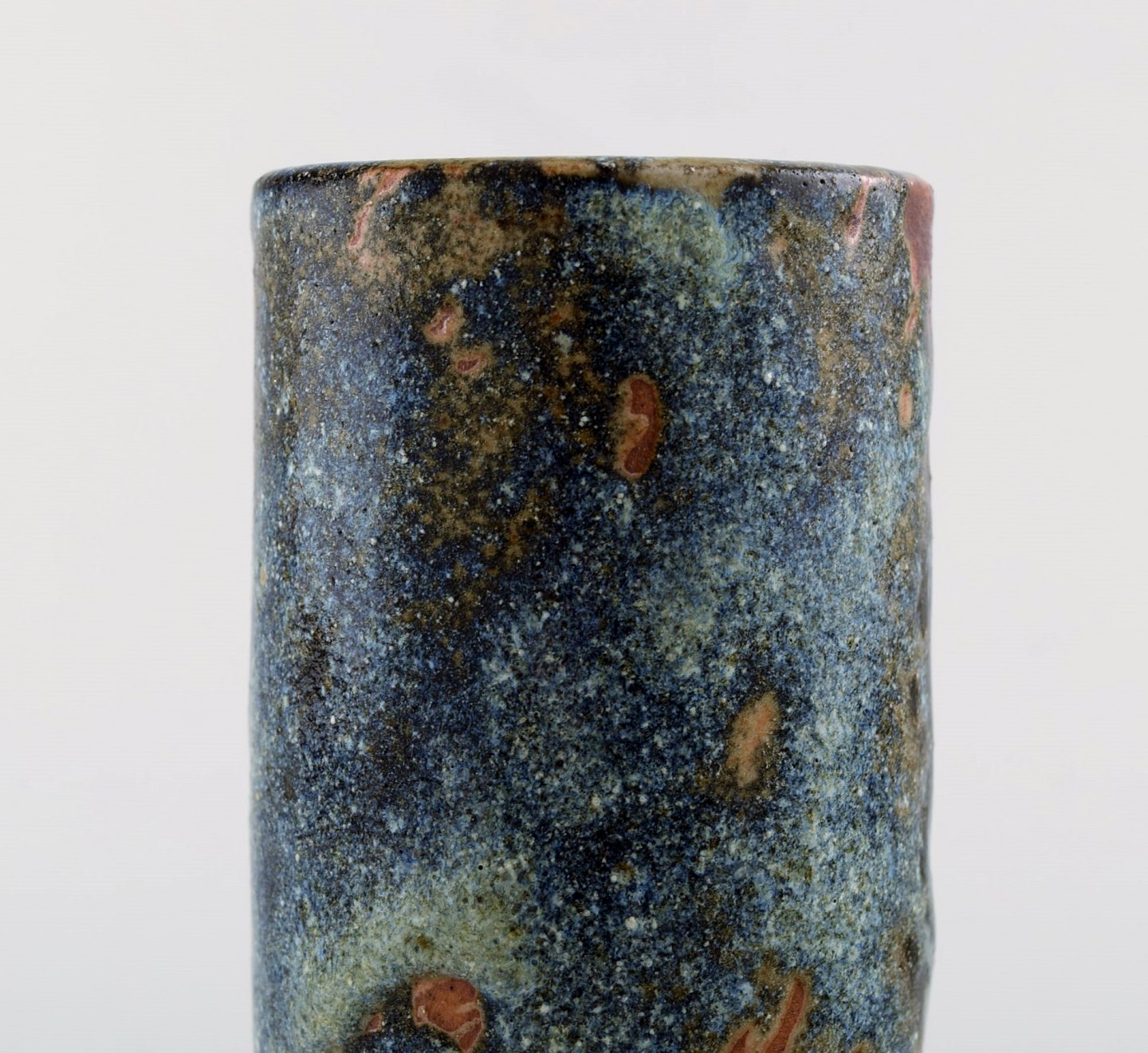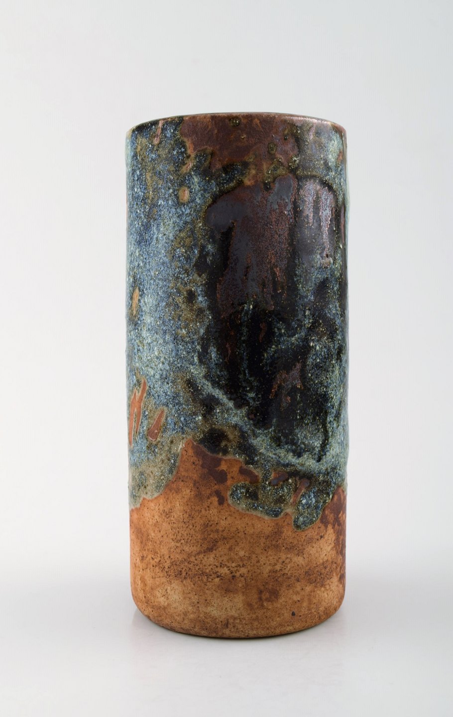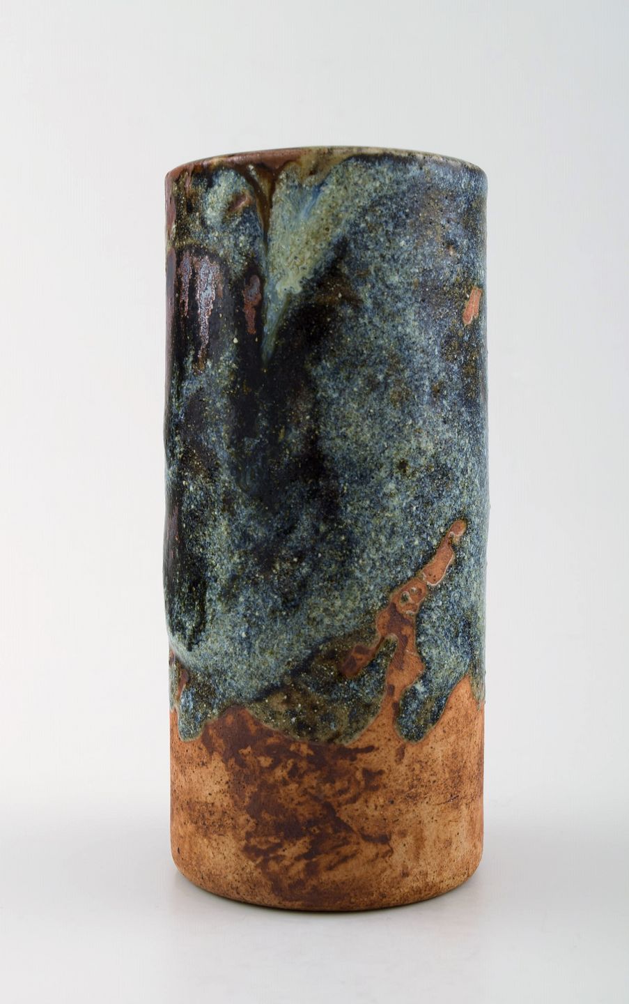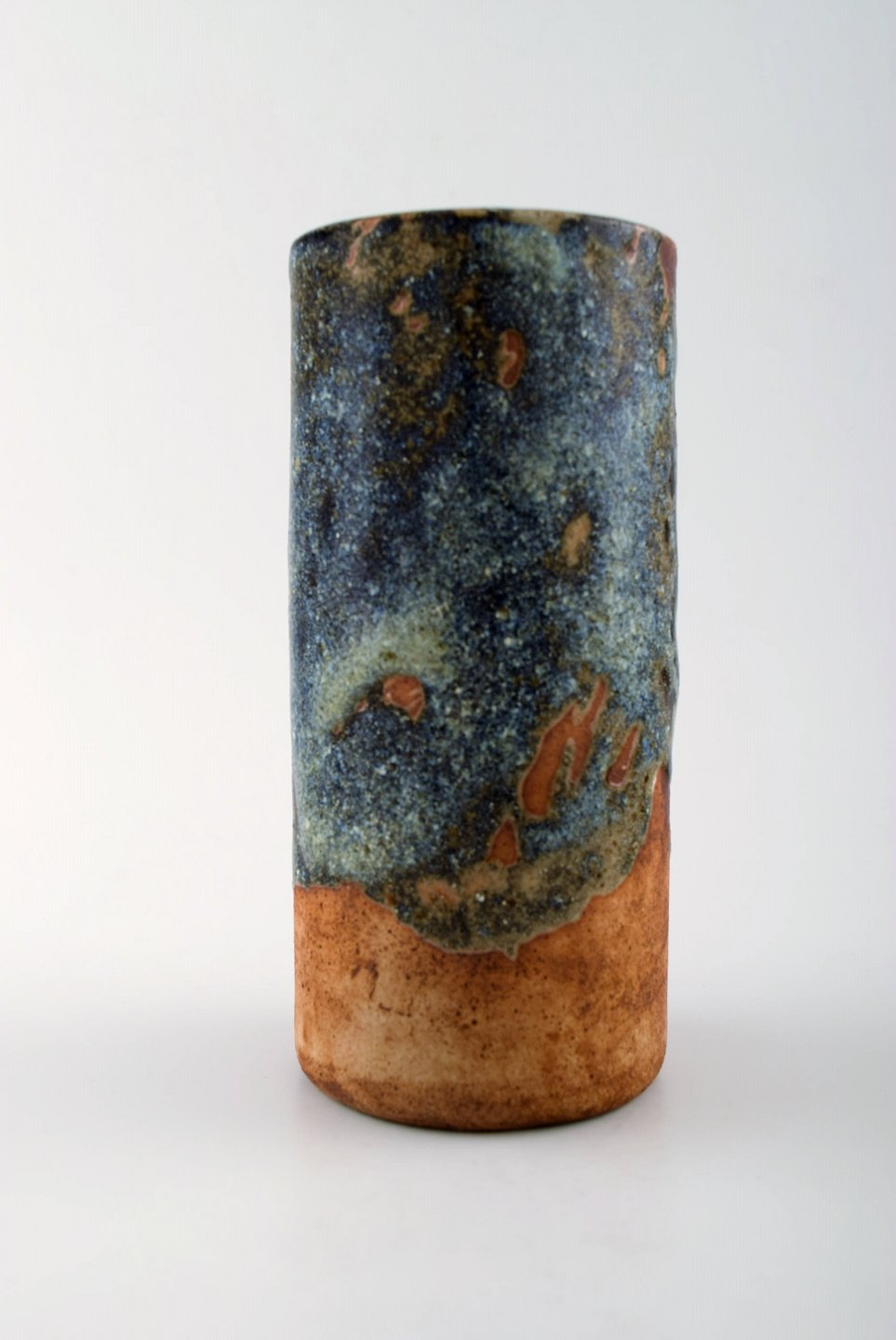 Conny Walther, Danish ceramist, vase in stoneware with brown and blue glaze. 1960/70 s.