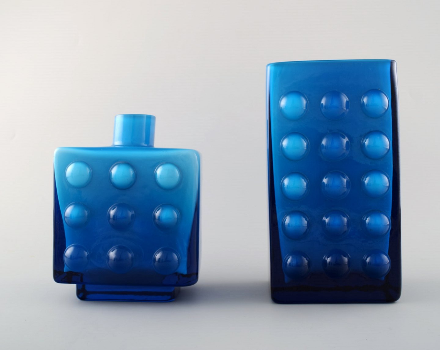 Collection of Swedish art glass, 4 turquoise vases in modern design. In perfect condition. Largest measures: 20 cm. x 11 cm.