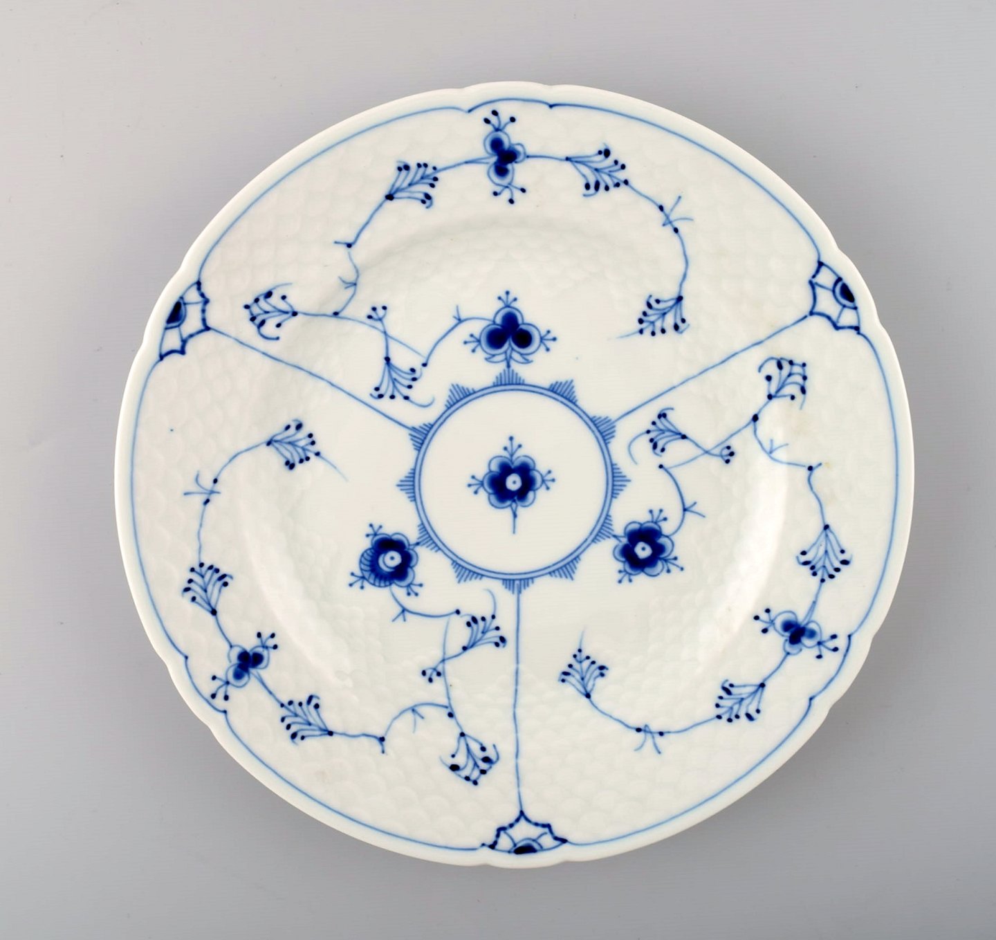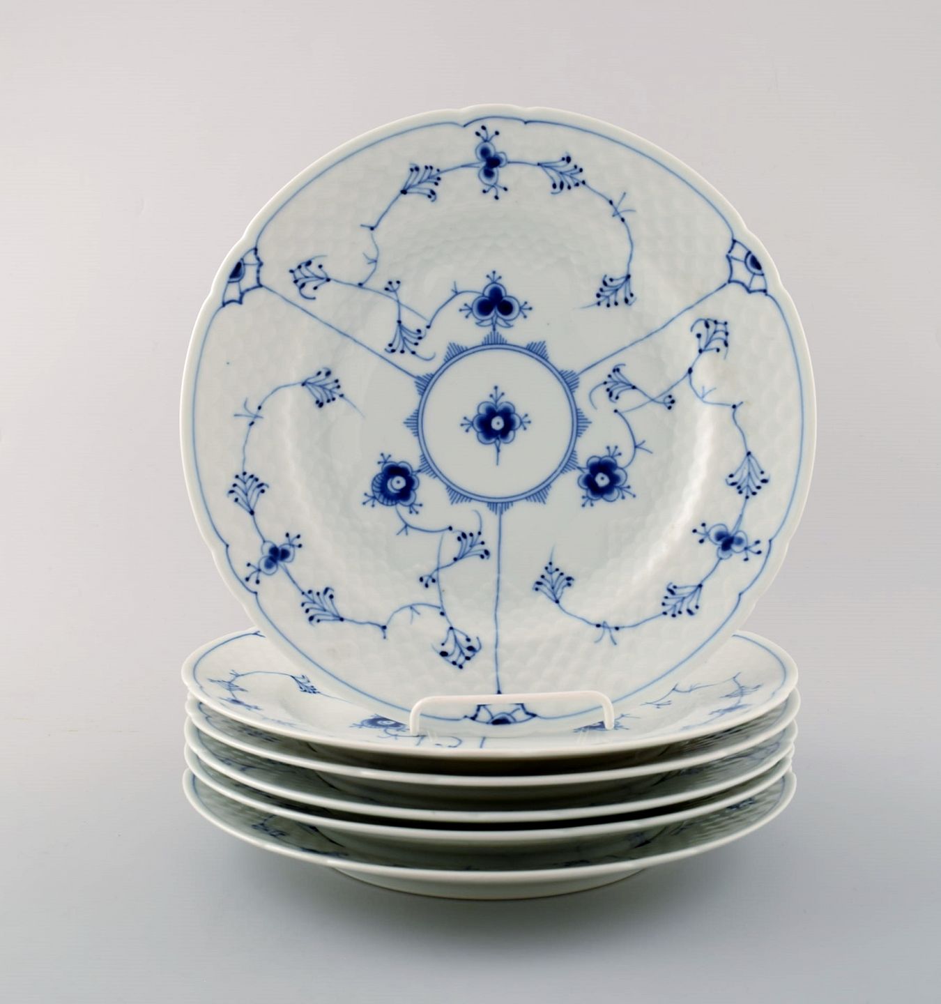 Bing & Grondahl, B&G blue fluted, 6 dinner plates. Measures: 24.5 cm. Number 325. 2nd. factory quality, in perfect condition.