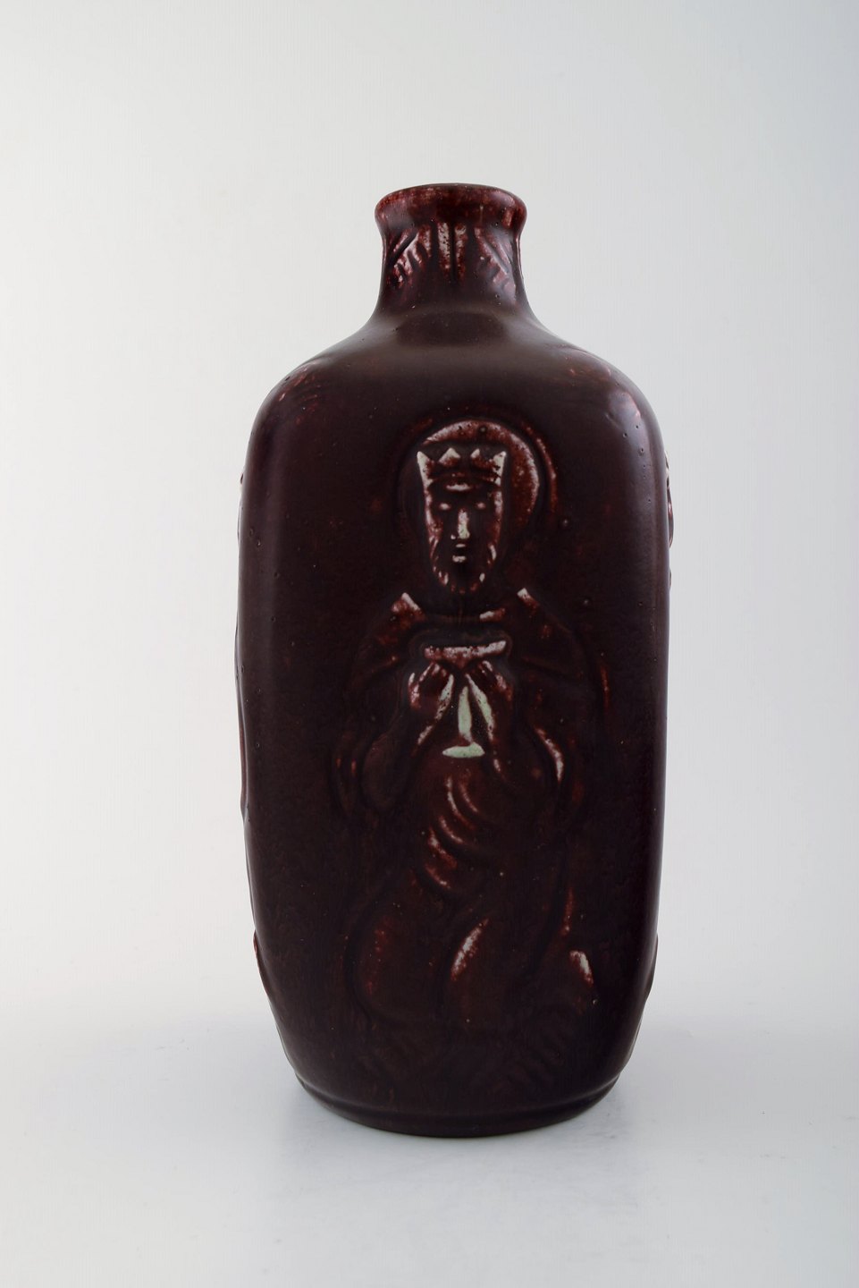 Royal Copenhagen Jais Nielsen keramik vase, okseblods glasur. Stemplet med de 3 blå bølger for Royal Copenhagen. Måler: 23,5 cm. x 10,5 cm. I perfekt stand, første sortering.