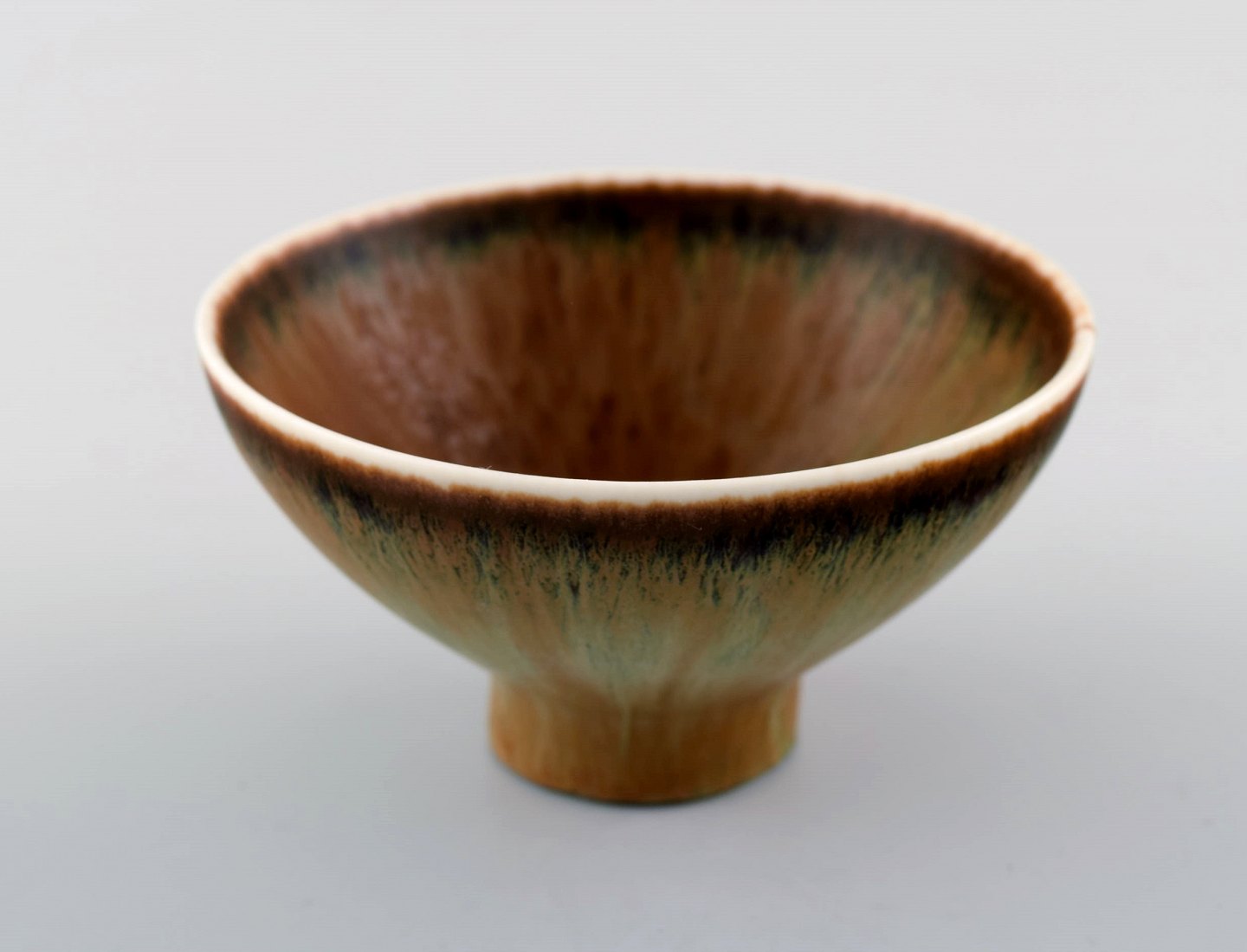 Carl-Harry Stålhane, Rörstrand/Rorstrand, ceramic bowl. Beautiful glaze in brown shades. Measures 10.5 cm. x 6 cm. In very good condition, 2nd. factory quality.
