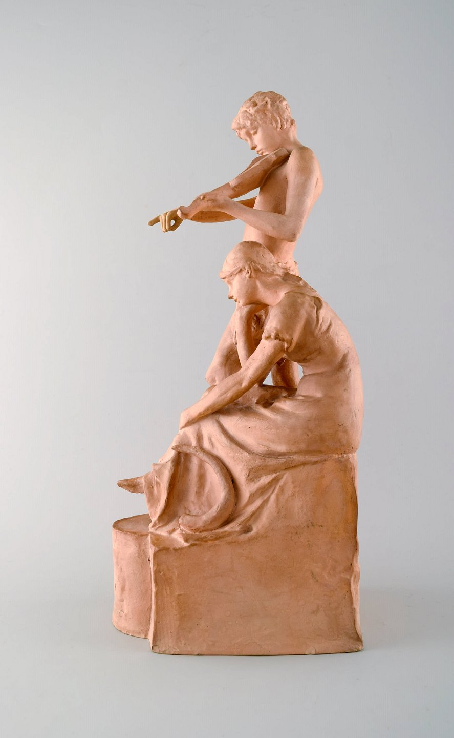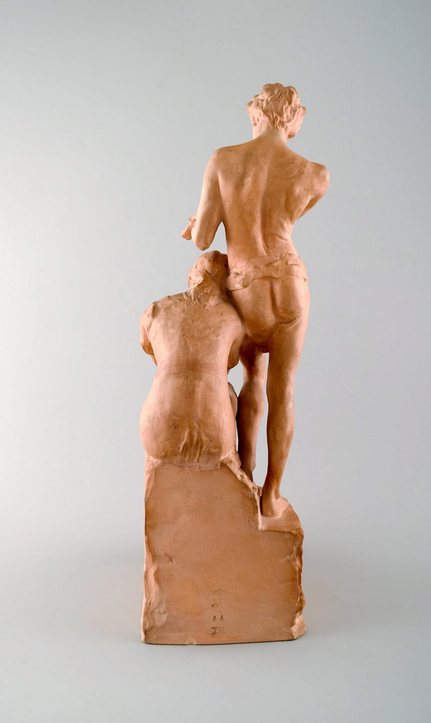 Ipsen's, Denmark. Unglazed ceramic/terracotta. Stamped P. Ipsen, no. 44. Young couple. Measures: 37 x 16 cm. 1890 s. In perfect condition.