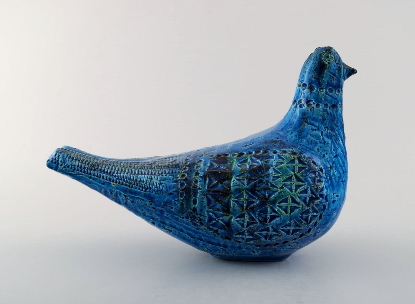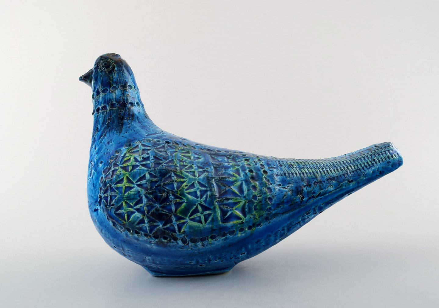Bitossi, Rimini-blue pigeon in ceramics, designed by Aldo Londi. Stamped. 1960 s. Measures: 22 cm. x 16 cm. In perfect condition.