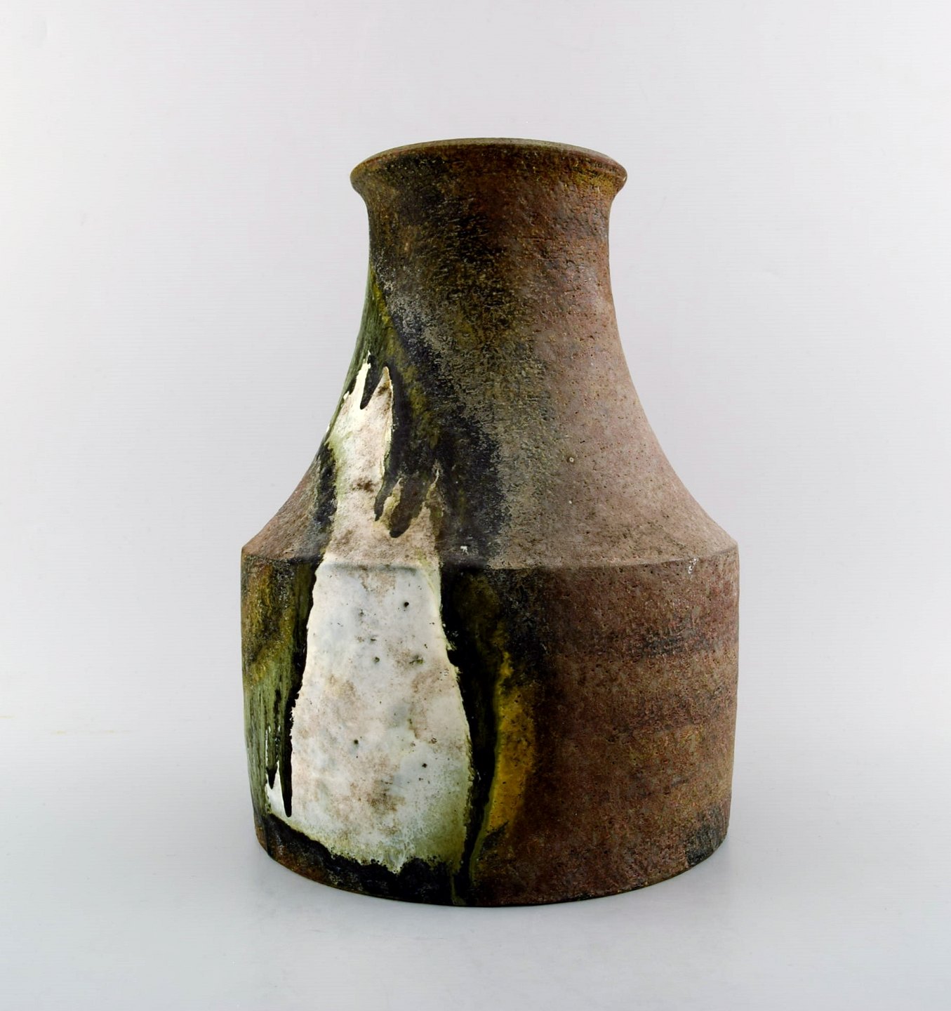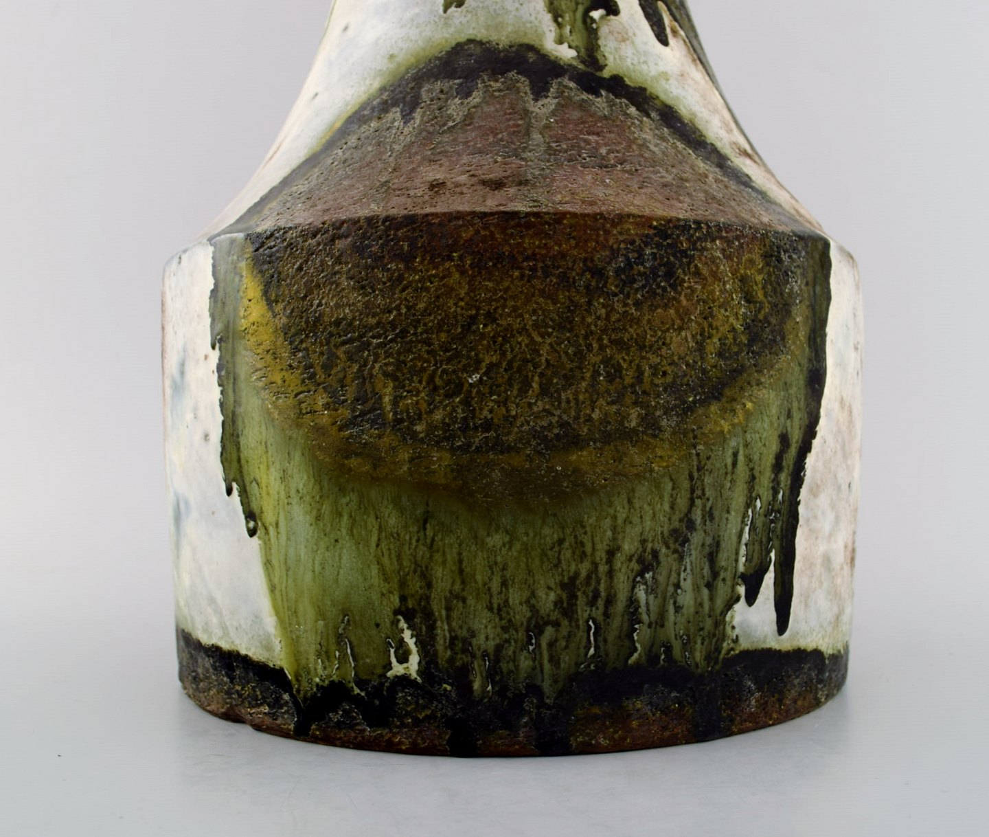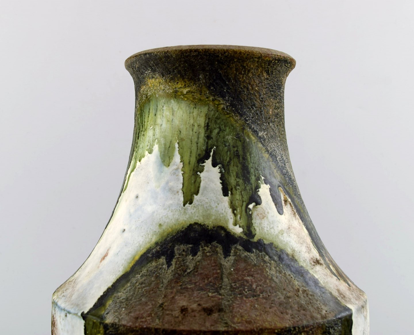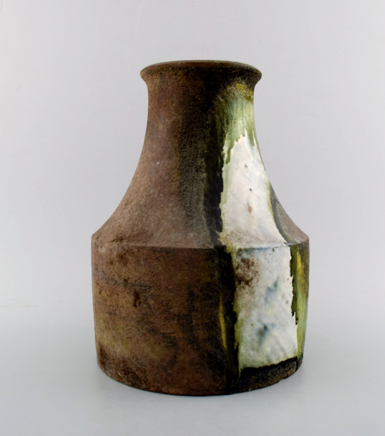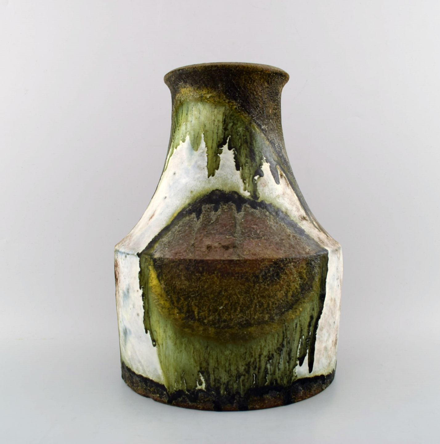 Marcello Fantoni, Italy. Large ceramic vase, glaze in green and brown tones. 1970s. In perfect condition. Measures: 29 cm. x 20 cm. Stamped.