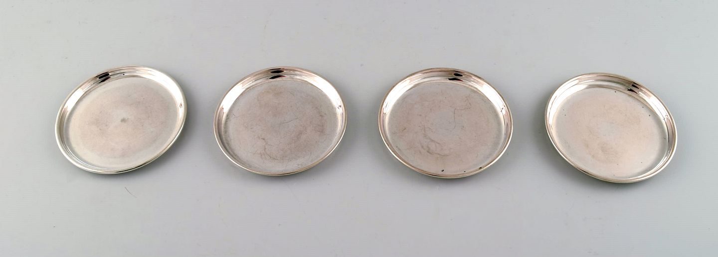 Fire Cohr flaskebakker i tretårnet sølv. I flot stand. Stemplet. 1930/40´erne. Cohr. Måler 8,5 cm.