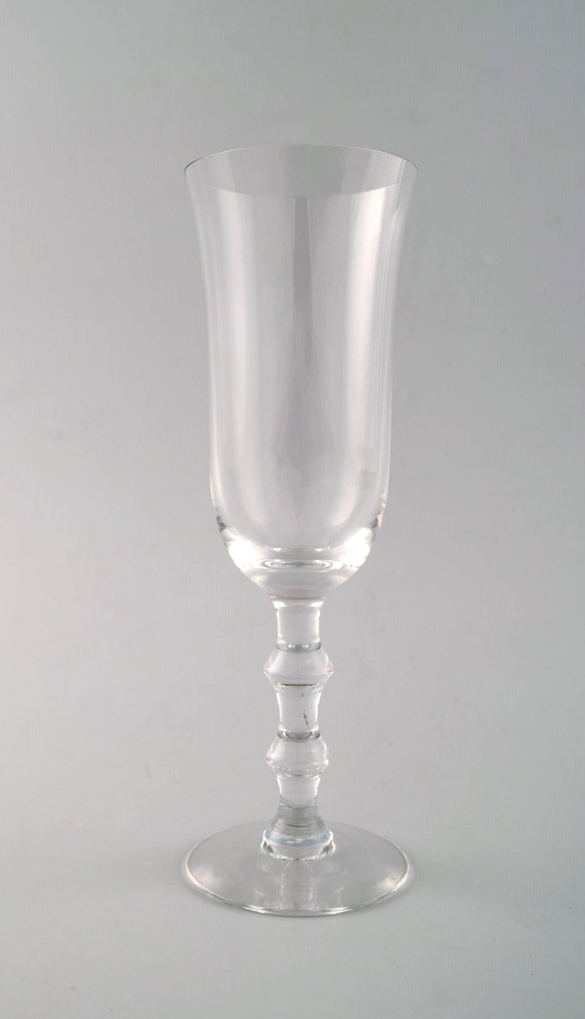 SIMON GATE FOR ORREFORS, A set of six champagne art glasses. Designer: Simon Gate. Series: Salut Producer: Orrefors Country: Sweden Designed: 1923 Size: Height 19 cm, diameter 6 cm.