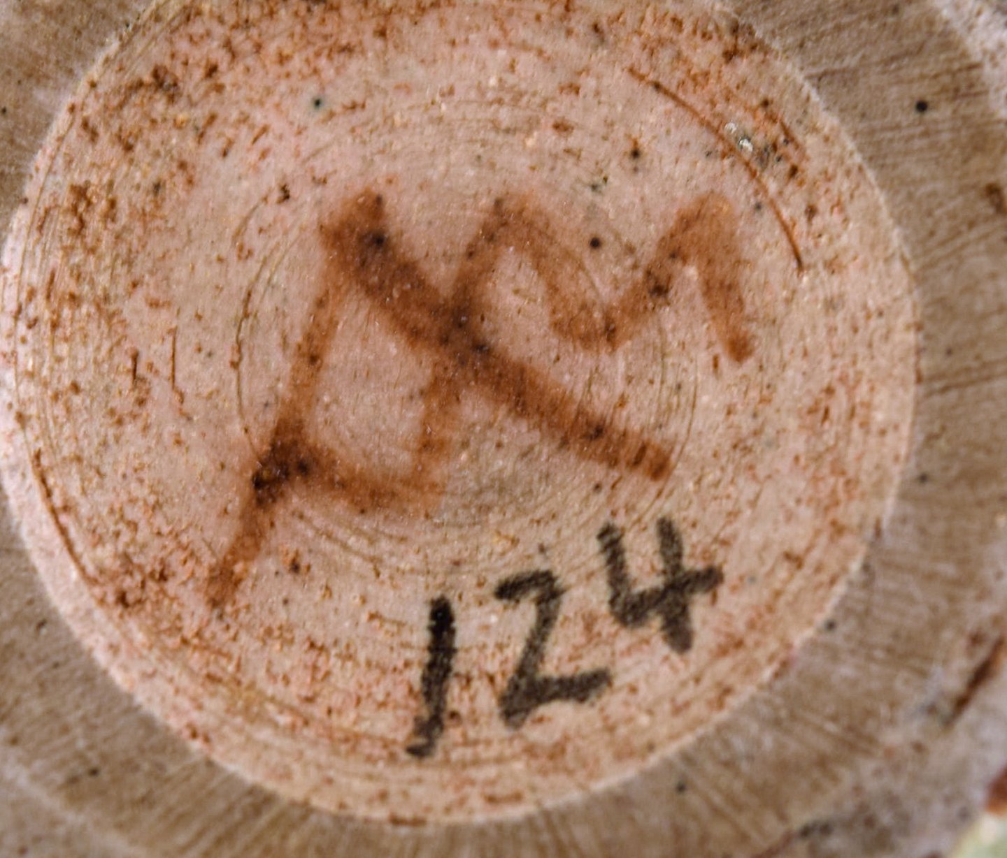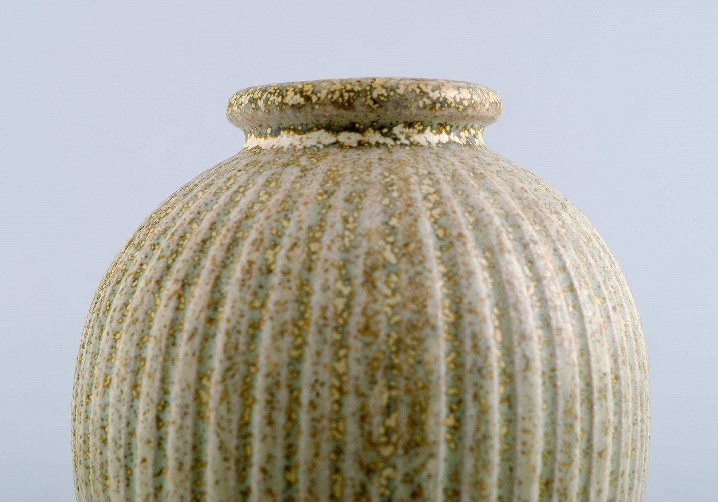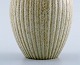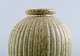 Arne Bang. Ceramic vase in ribbed style. Stamped AB 124. Beautiful glaze in sand shades. In perfect condition. Measures 12.5 cm. x 9.5 cm.