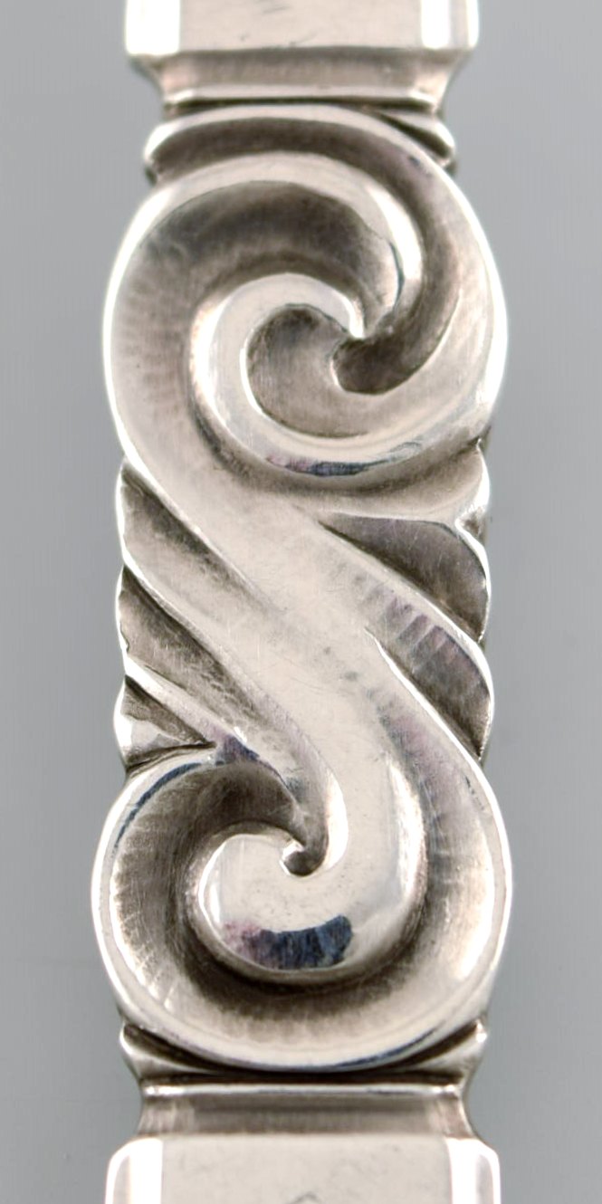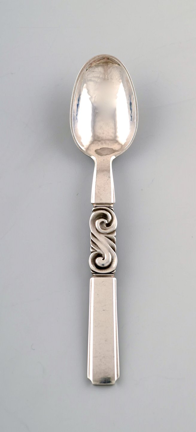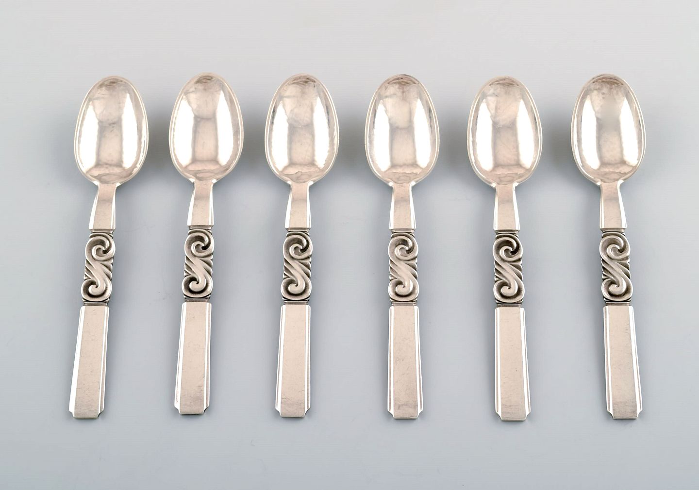 Georg Jensen. Cutlery, Scroll no. 22, hammered Sterling Silver consisting of: 6 coffee spoons. In perfect condition. Stamped. Measures: 10.5 cm.