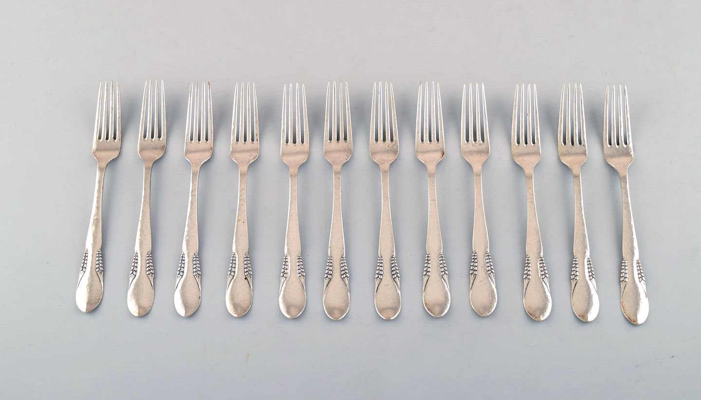 Danish silver (830), 11 dinner forks. Stamped: CFH: Christian Fr. Heise. 1910/20 s. In very good condition. Measures 18 cm.