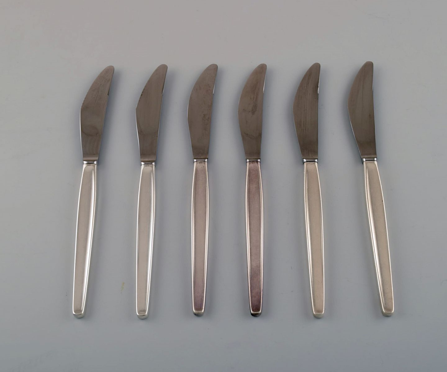 Georg Jensen Sterling Silver Cypress 6 Dinner Knifes. Measures 22.5 cm. In perfect condition. Stamped.