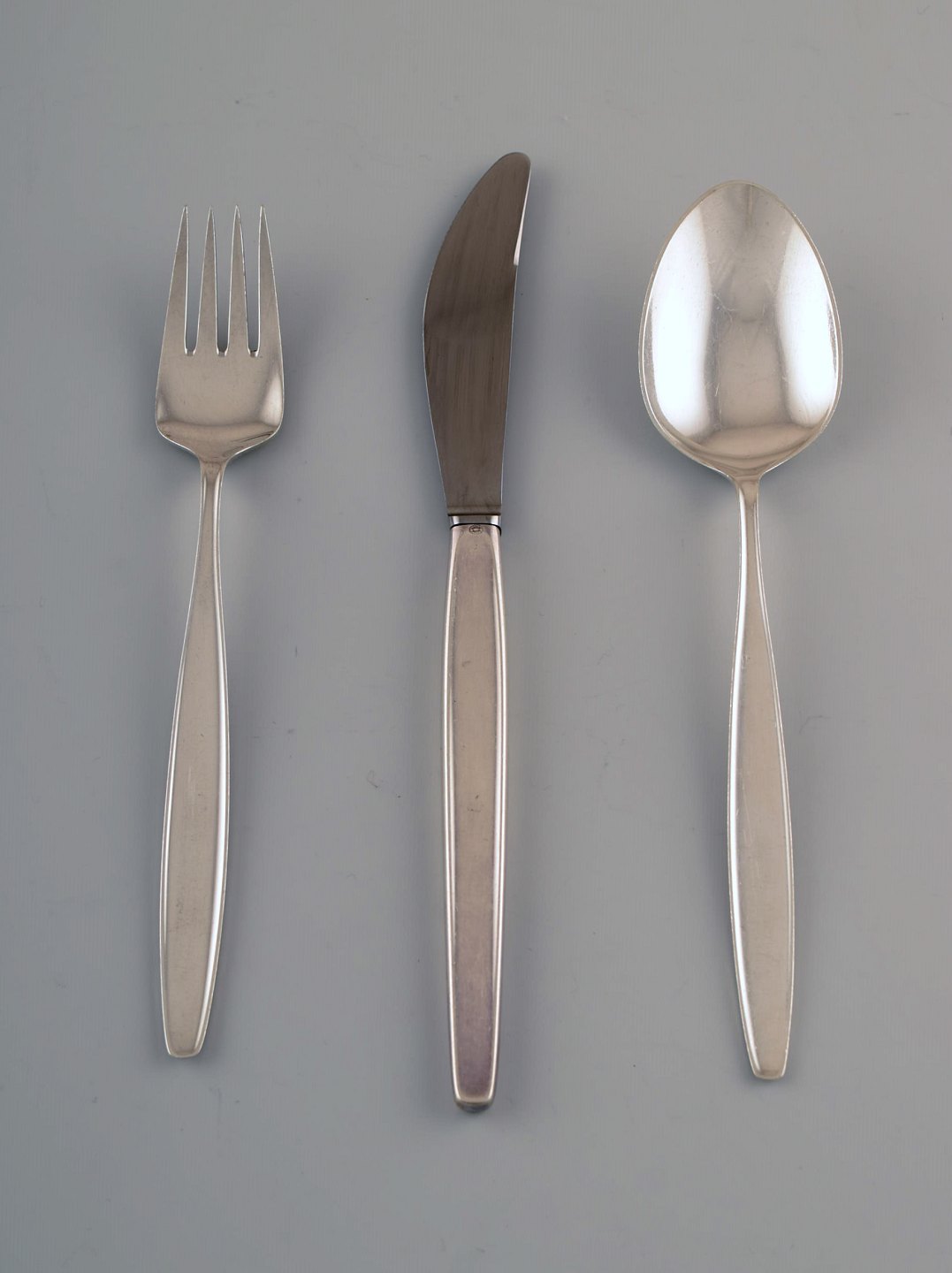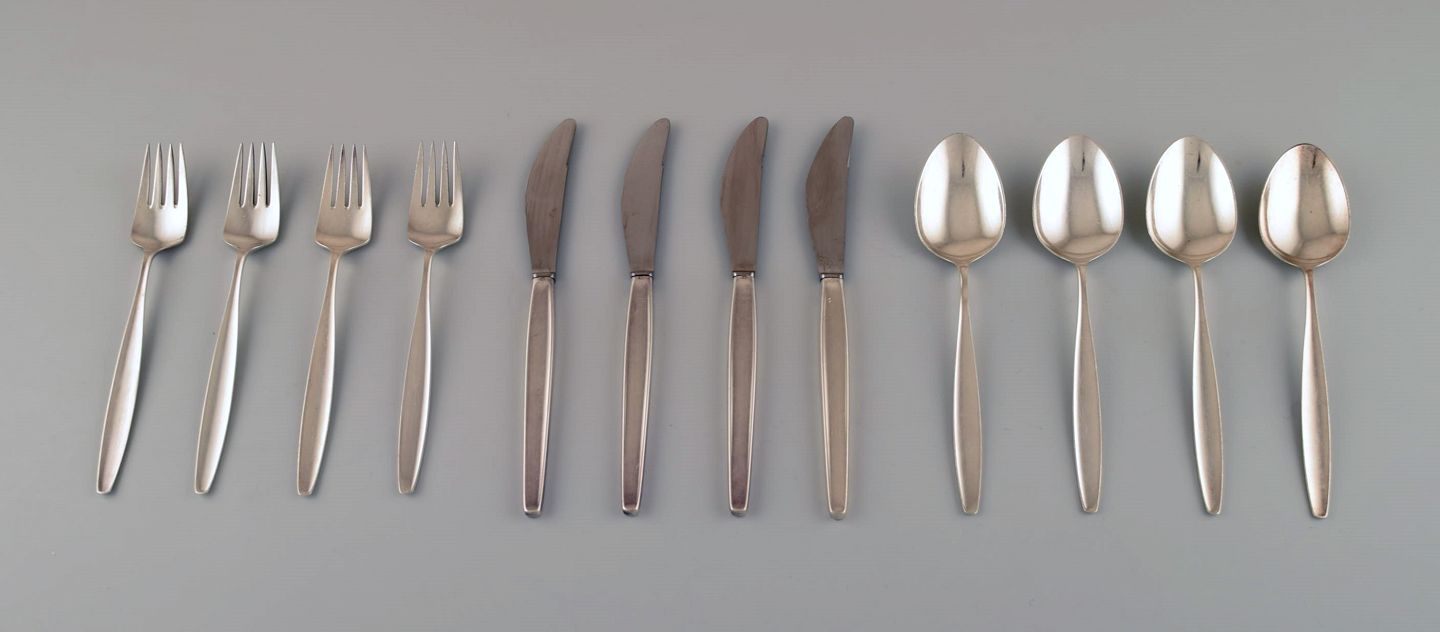 Georg Jensen Sterlingsølv 'Cypress' Bestik. Middagsservice, 12 dele til 4 pers. Bestående af : Spiseknive, suppeskeer, middagsgafler. Spisekniv måler 22,4 cm. I perfekt stand. Stemplet.