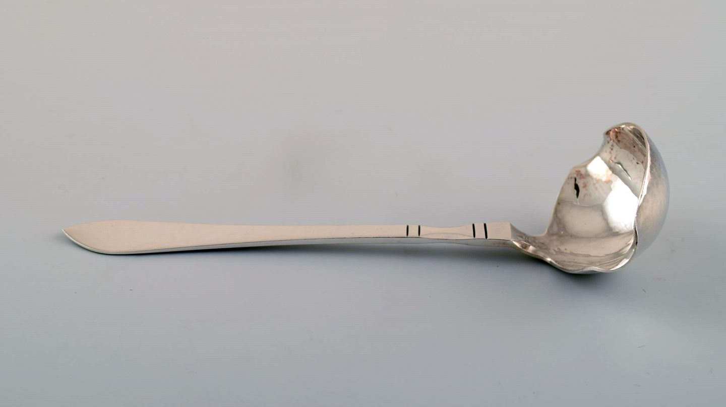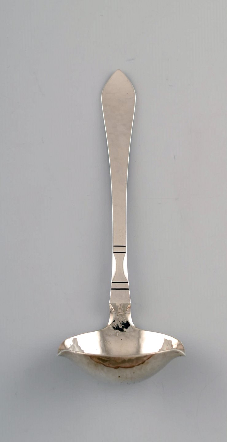 Georg Jensen Continental sauce/butter spoon in all silver, silverware, hand hammered. The cutlery is designed by Georg Jensen in 1906. In perfect condition. Measures: 14.5 cm.