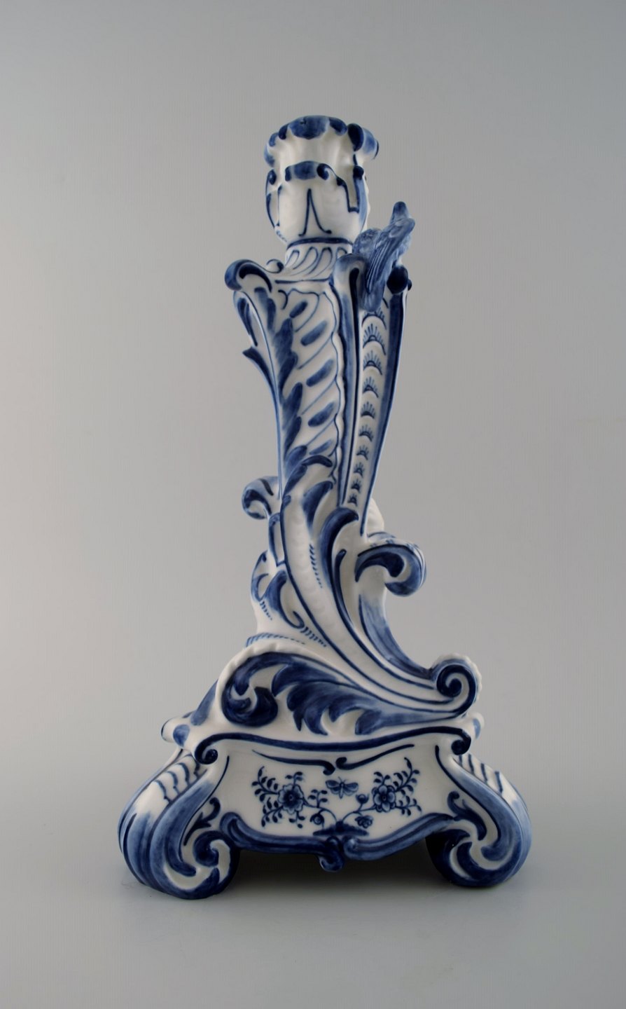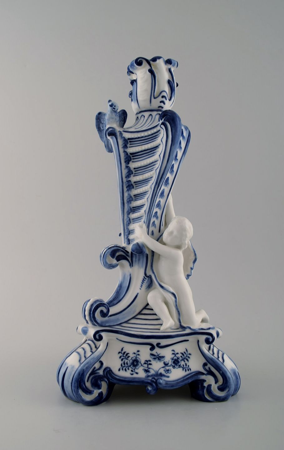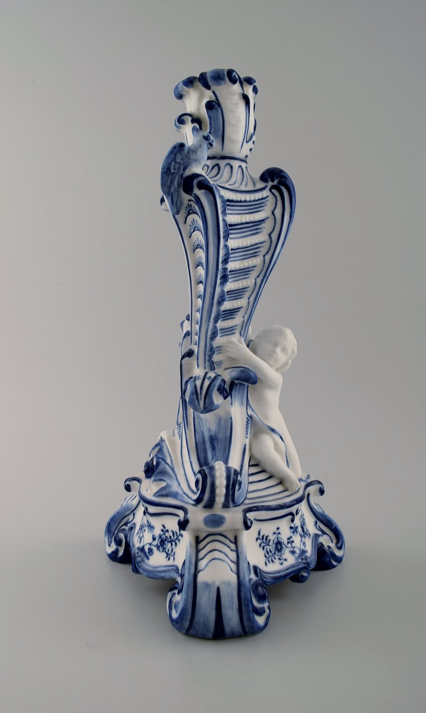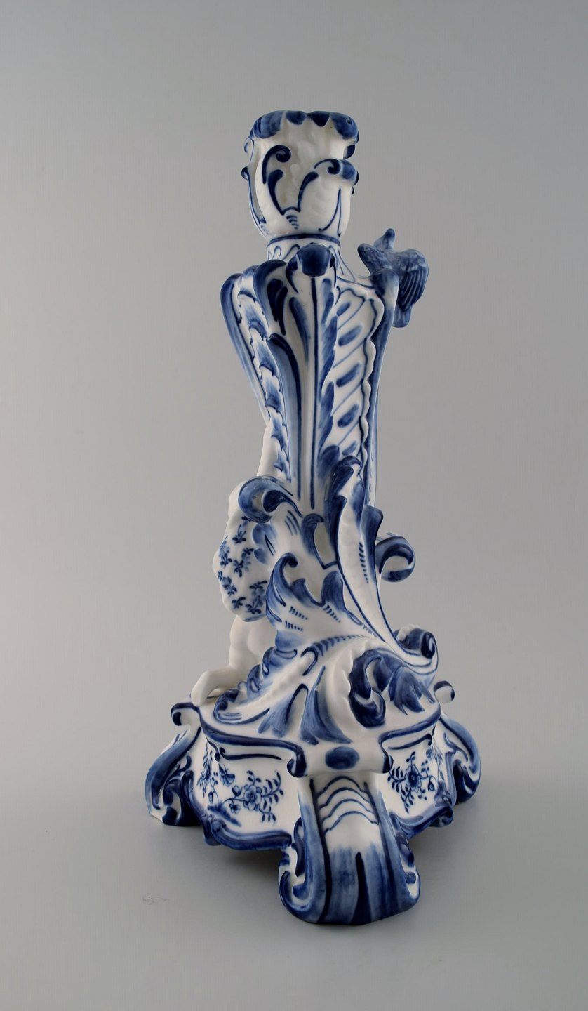 Royal Copenhagen. Candlestick of porcelain, Blue Fluted no. 1/13 with bird and fawn sitting on tripod base. 1st. factory quality. In perfect condition. Measures: 32 cm. x 17 cm.