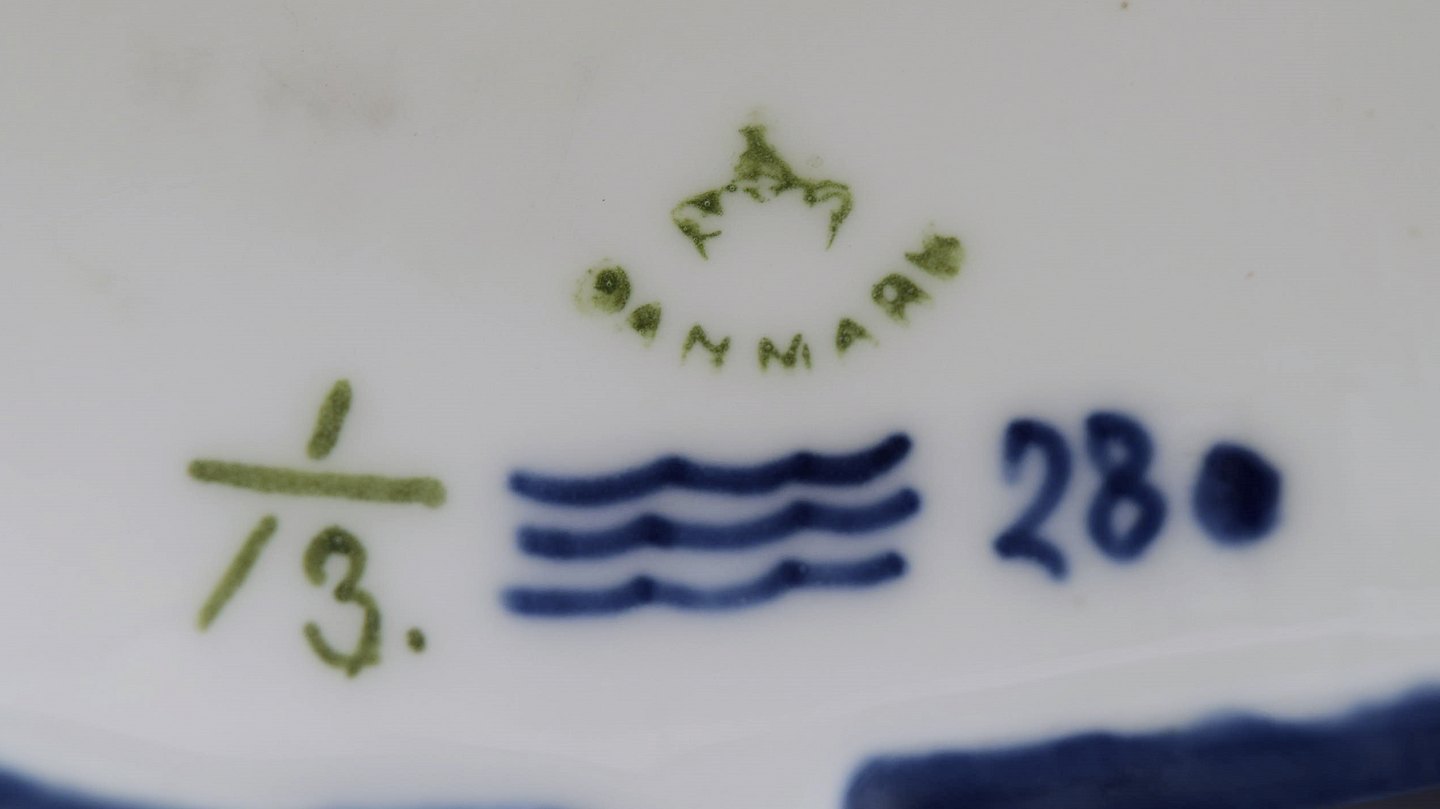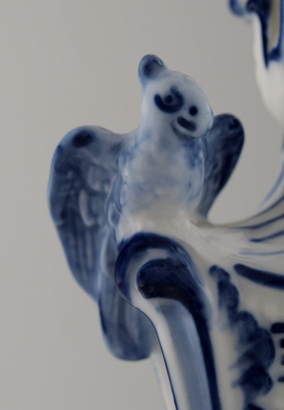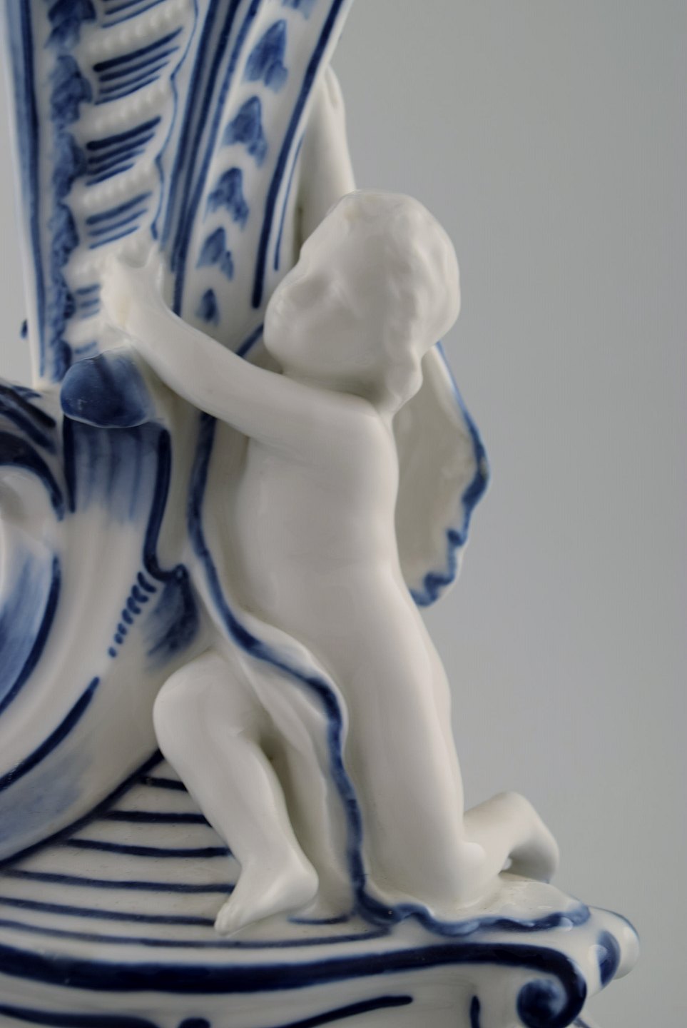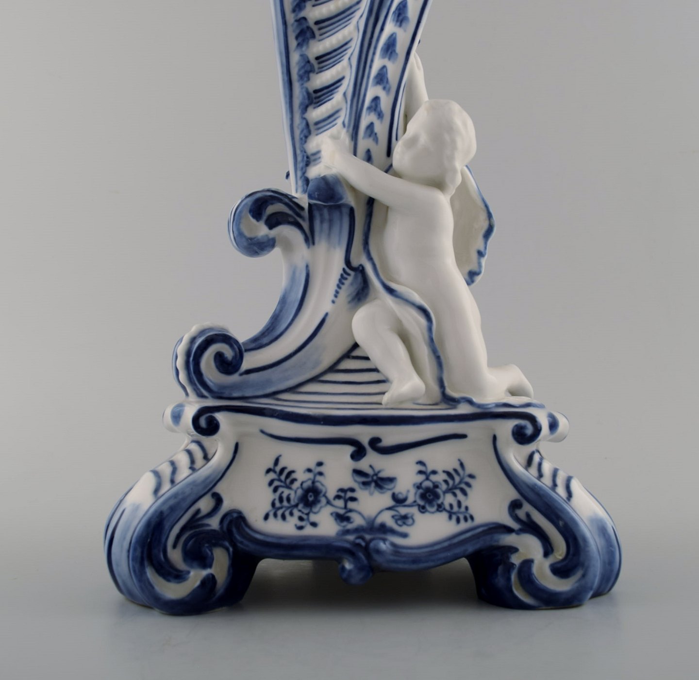 Royal Copenhagen. Candlestick of porcelain, Blue Fluted no. 1/13 with bird and fawn sitting on tripod base. 1st. factory quality. In perfect condition. Measures: 32 cm. x 17 cm.