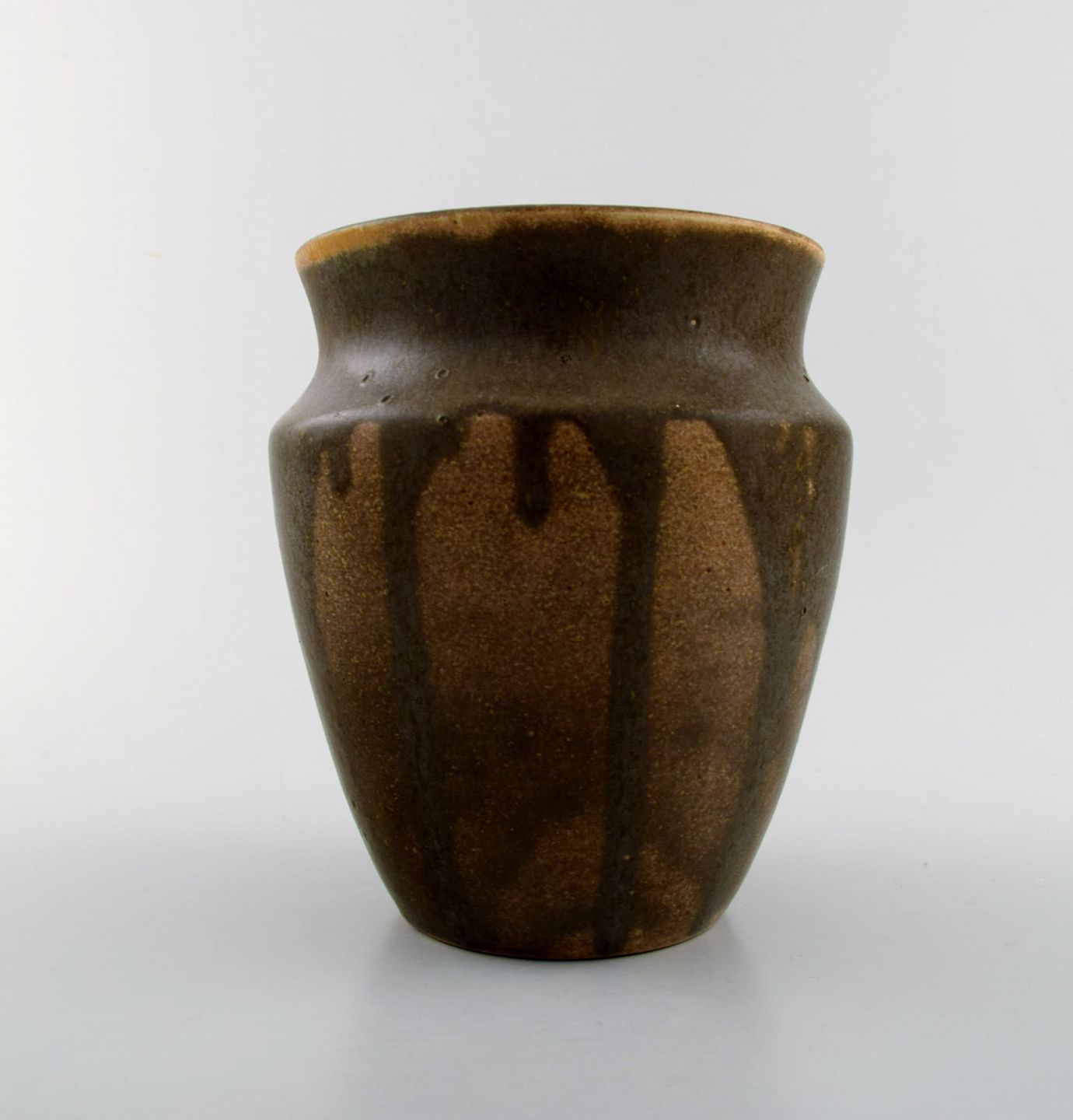 Patrick Nordstrøm. Unique ceramic vase. Islev. Beautiful glaze in earth colors. Stamped PN, Islev 1929. 15,5 cm. high. Diameter 14 cm. Perfect condition.
