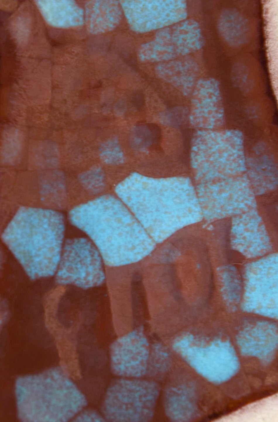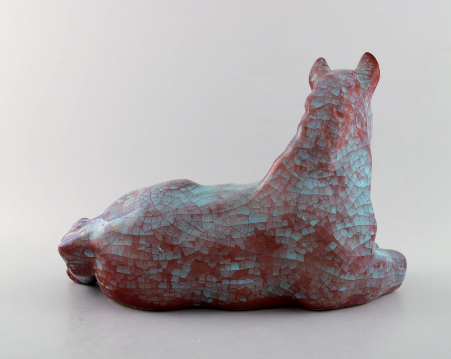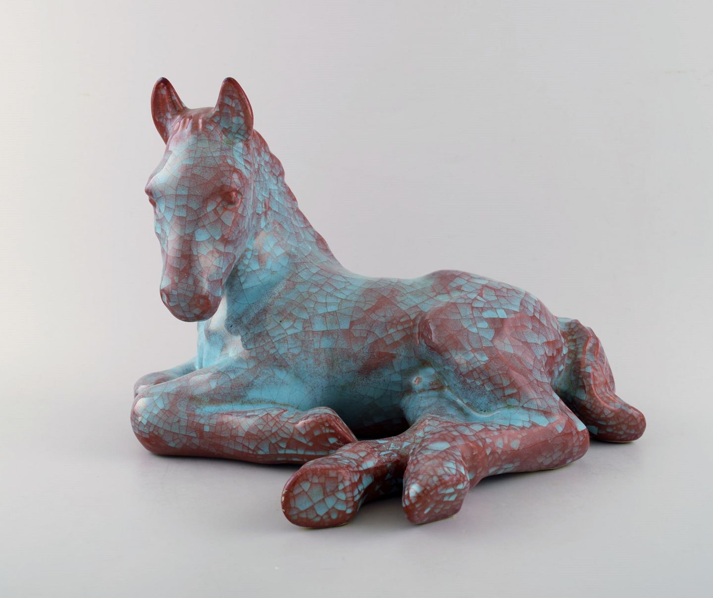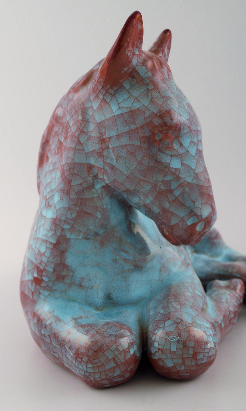 Michael Andersen: liggende føl/hest, i grønne og violette nuancer.