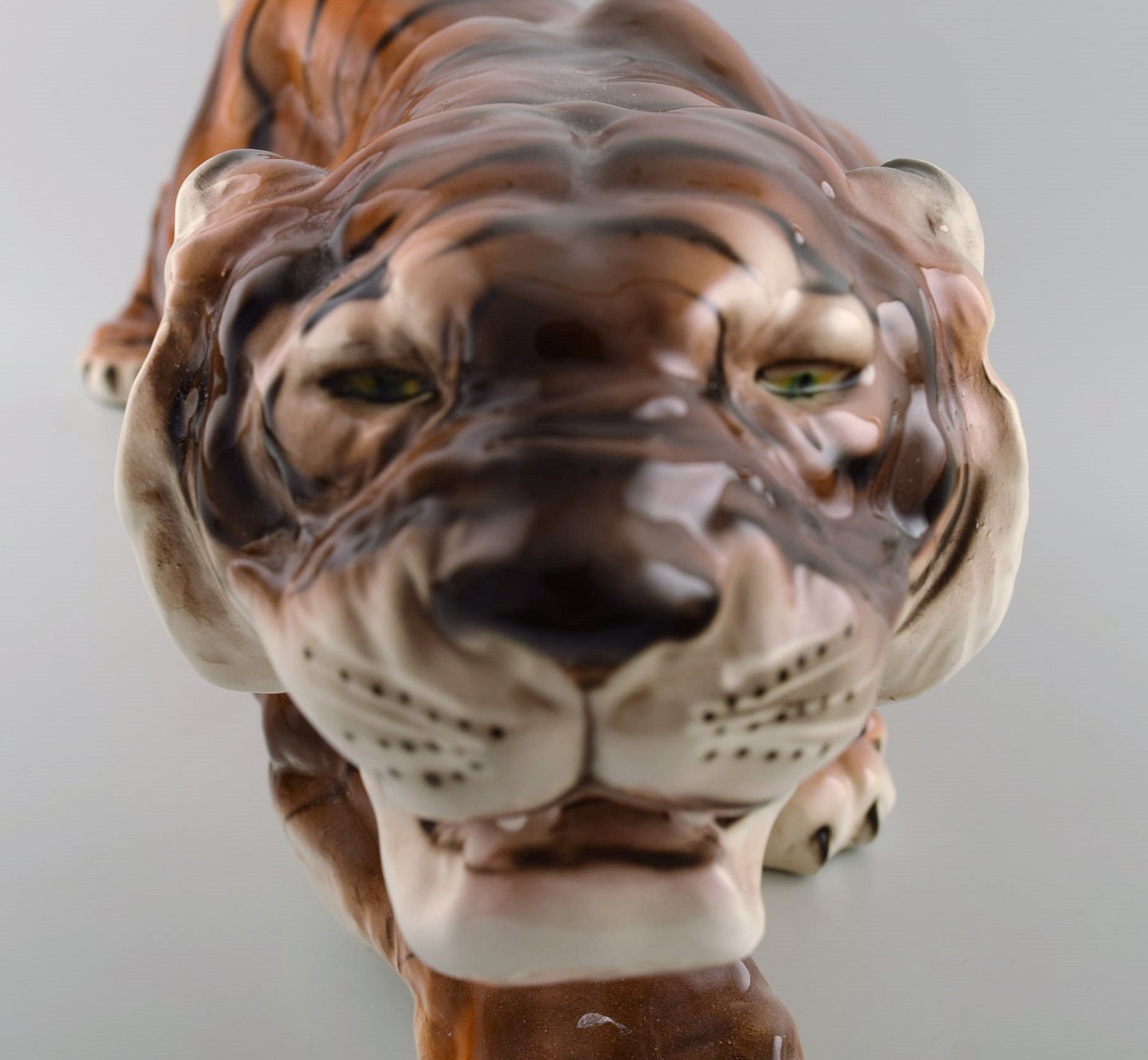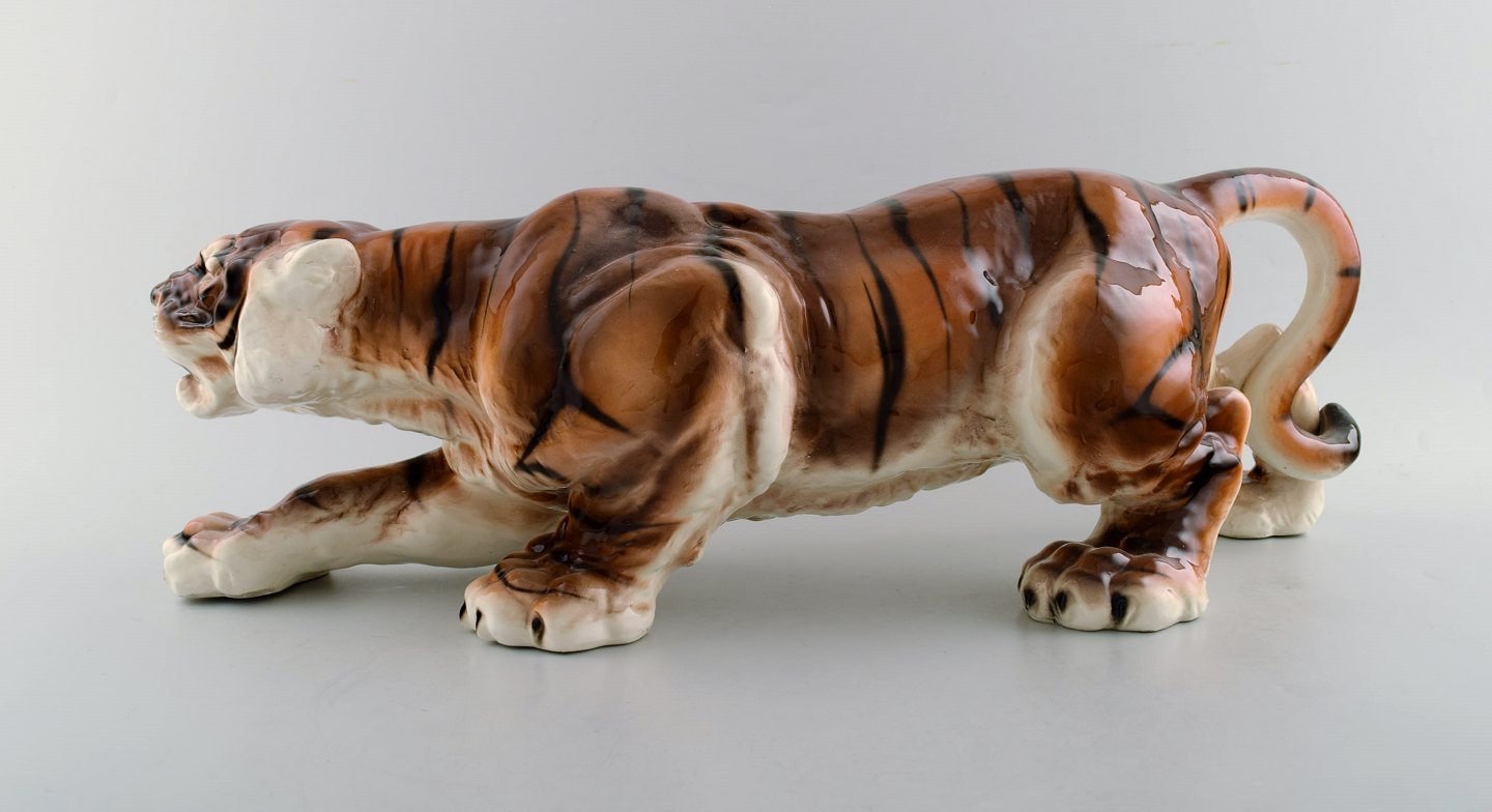 Keramos, Vienna, very large tiger in porcelain. Beautiful figurine, approx. 1940 s. Measures: 49 cm. x 16 cm. In perfect condition. Stamped.