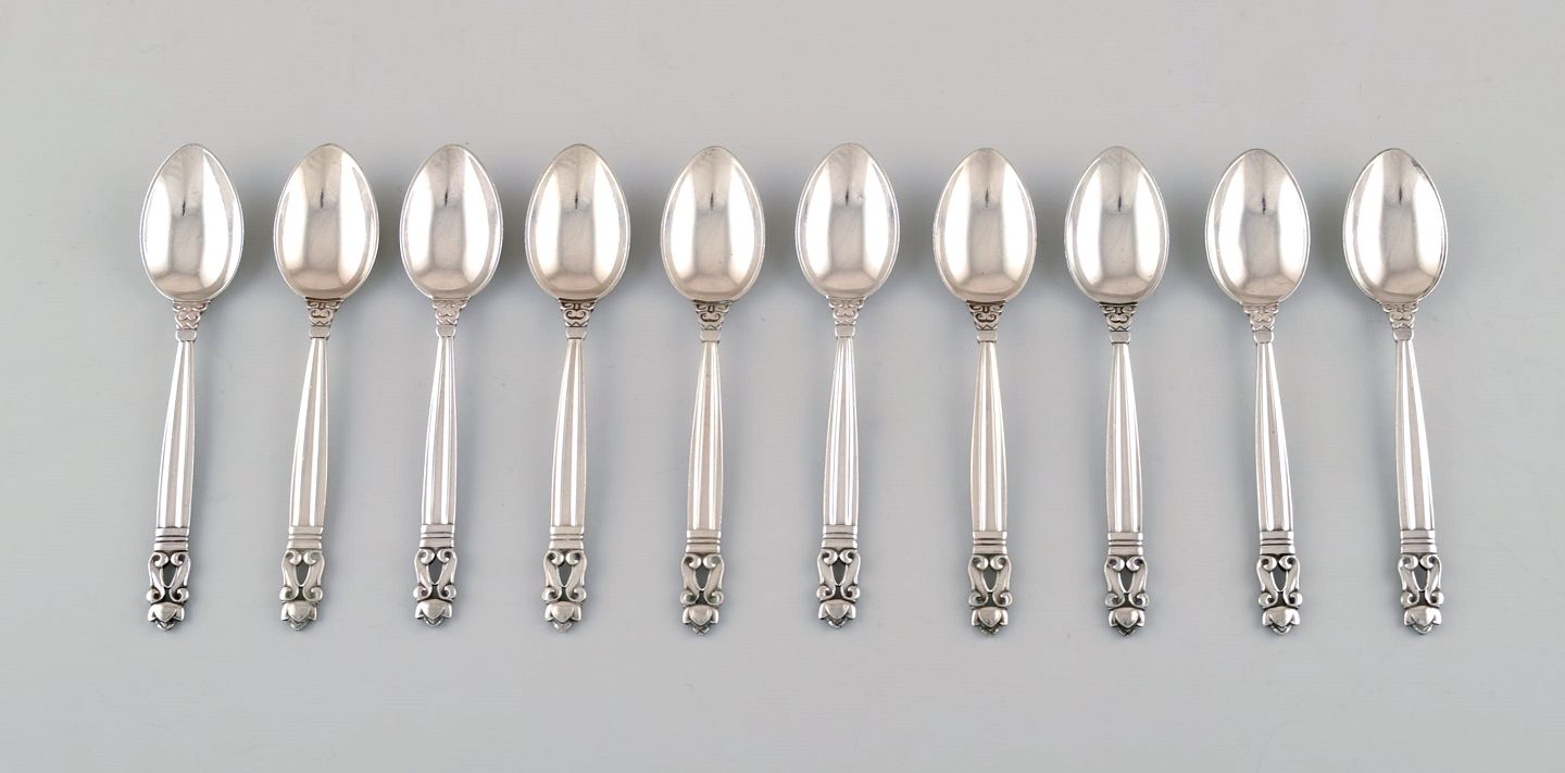 Georg Jensen "KONGE" teske i sterlingsølv. 10 stk. på lager. Designer: Johan Rohde. Længde: : 13 cm. Stemplet. I perfekt stand.
