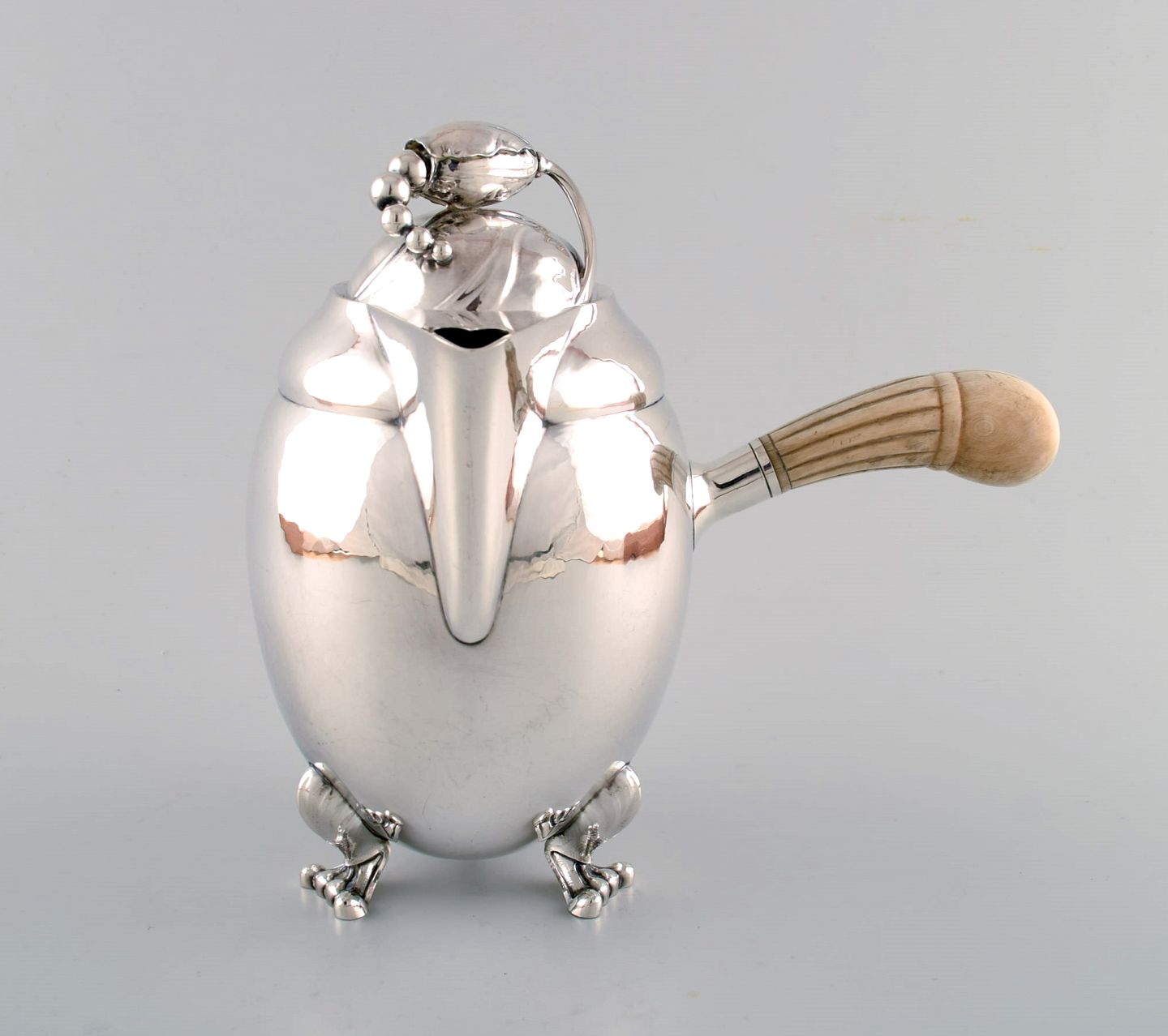 Georg Jensen Sterlingsølv Magnolia chokoladekande Nummer 2D. 22 cm høj. I flot stand. Stemplet efter 1945.
