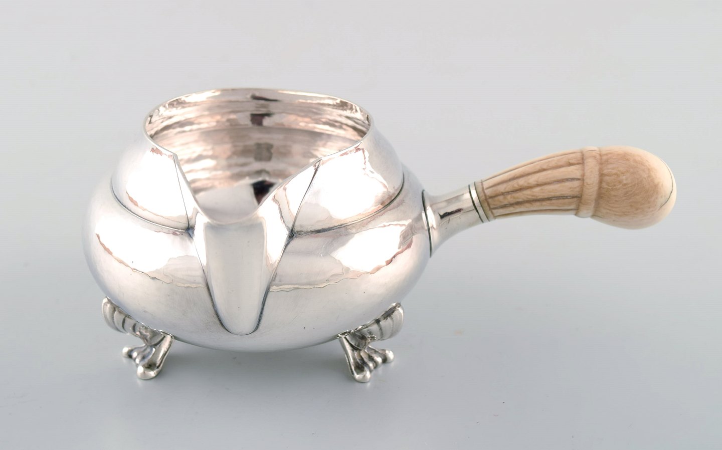 Georg Jensen Magnolia sterlingsølv stor flødekande Nummer 2D. Måler 14 cm. lang inkl. håndtag. 7 cm. høj. Vægt 229 gram. Stemplet.