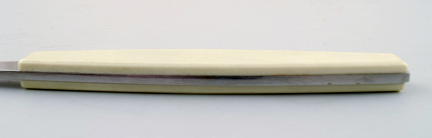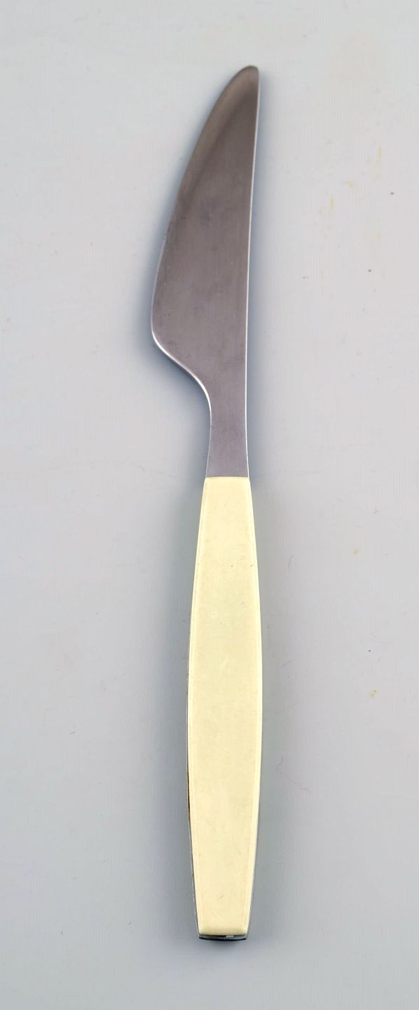 4 pcs. Dinner knife. Henning Koppel in stainless steel and white plastic cutlery. 4 pcs. in stock. Manufactured by Georg Jensen. In very good condition. Danish design 1970 s. 20.5 cm. long.