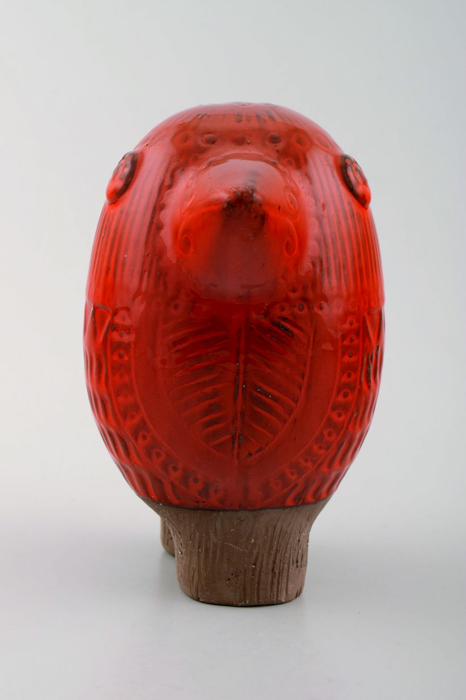 Sjælden MARI SIMMULSON for Upsala Ekeby, figur af fugl, rødglaseret keramik.