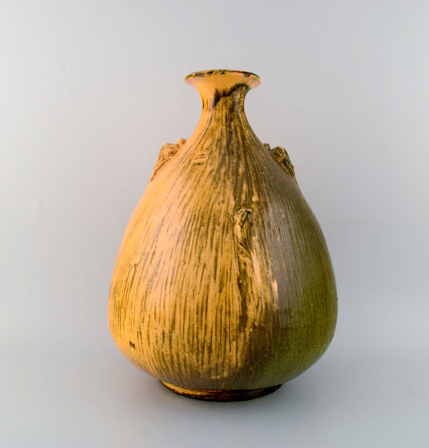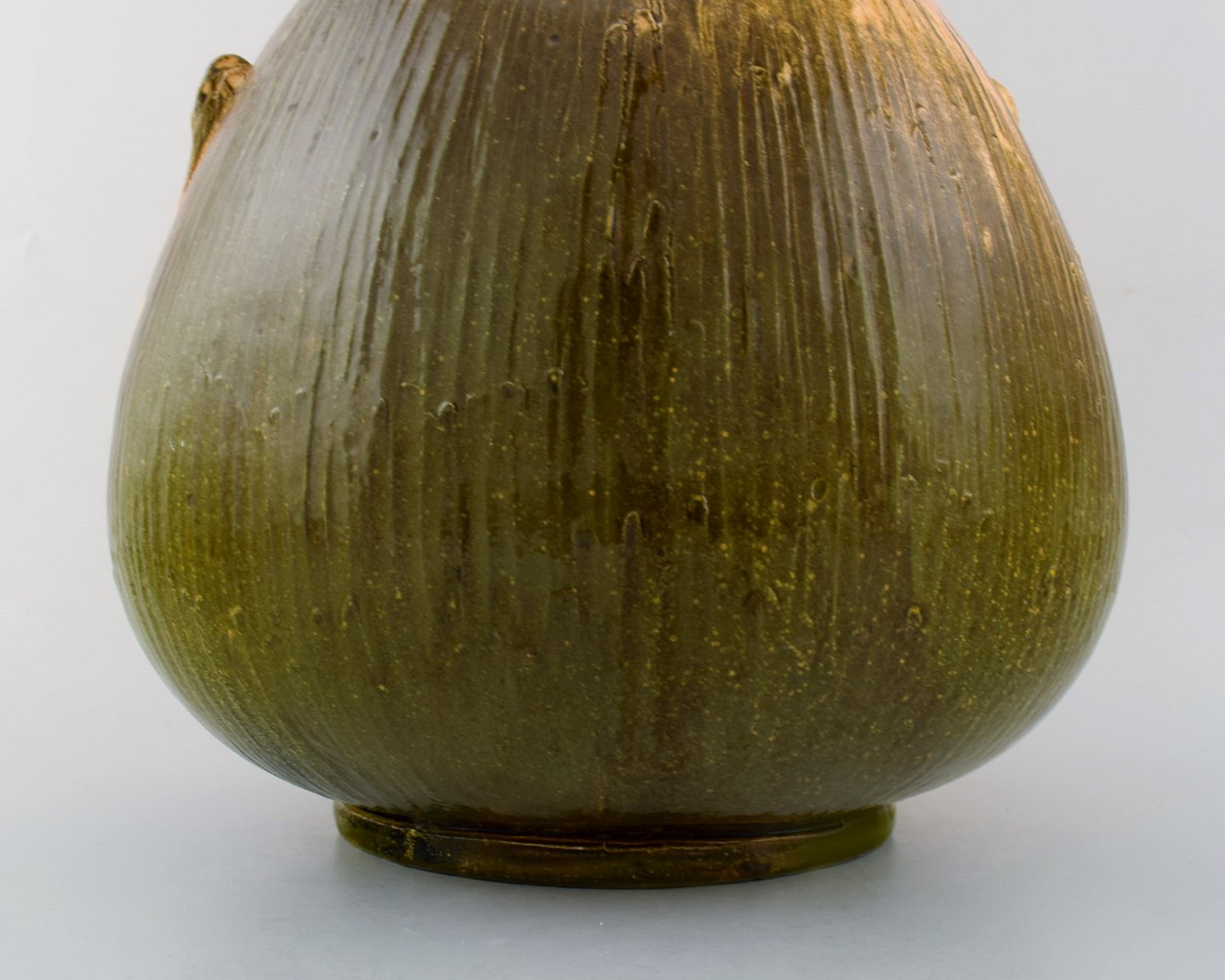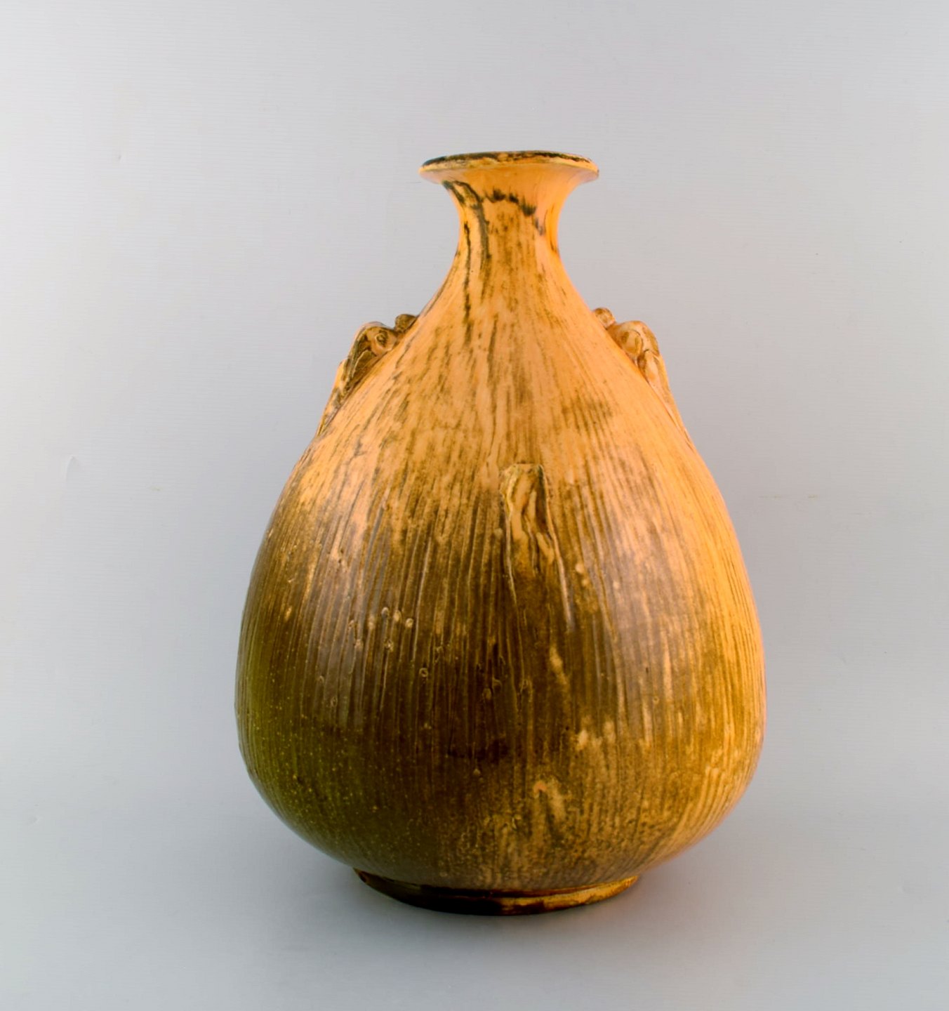 Large Kähler, Denmark, Svend Hammershøi, glazed vase in stoneware. In perfect condition. Beautiful uranium yellow glaze. Stamped. Measures 39 x 30 cm.