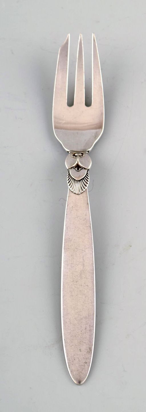 Georg Jensen Sterlingsølv 'Kaktus' bestik. Kagegaffel. Måler 15 cm. I flot stand. Tidligt stempel. 1933-1944 Designet af Gundorph Albertus i 1930.