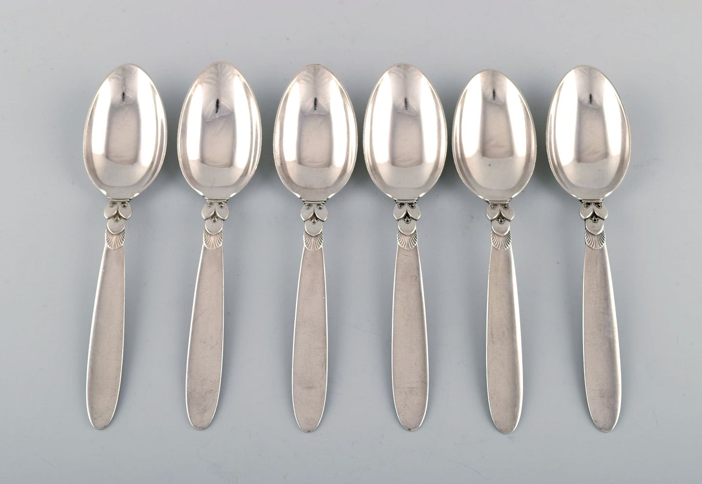 Georg Jensen Sterling Silver 'Cactus' cutlery. Set of 6 dessert spoons. Measures 17 cm. In very good condition. Early stamp. 1933-1944 Designed by Gundorph Albertus in 1930.