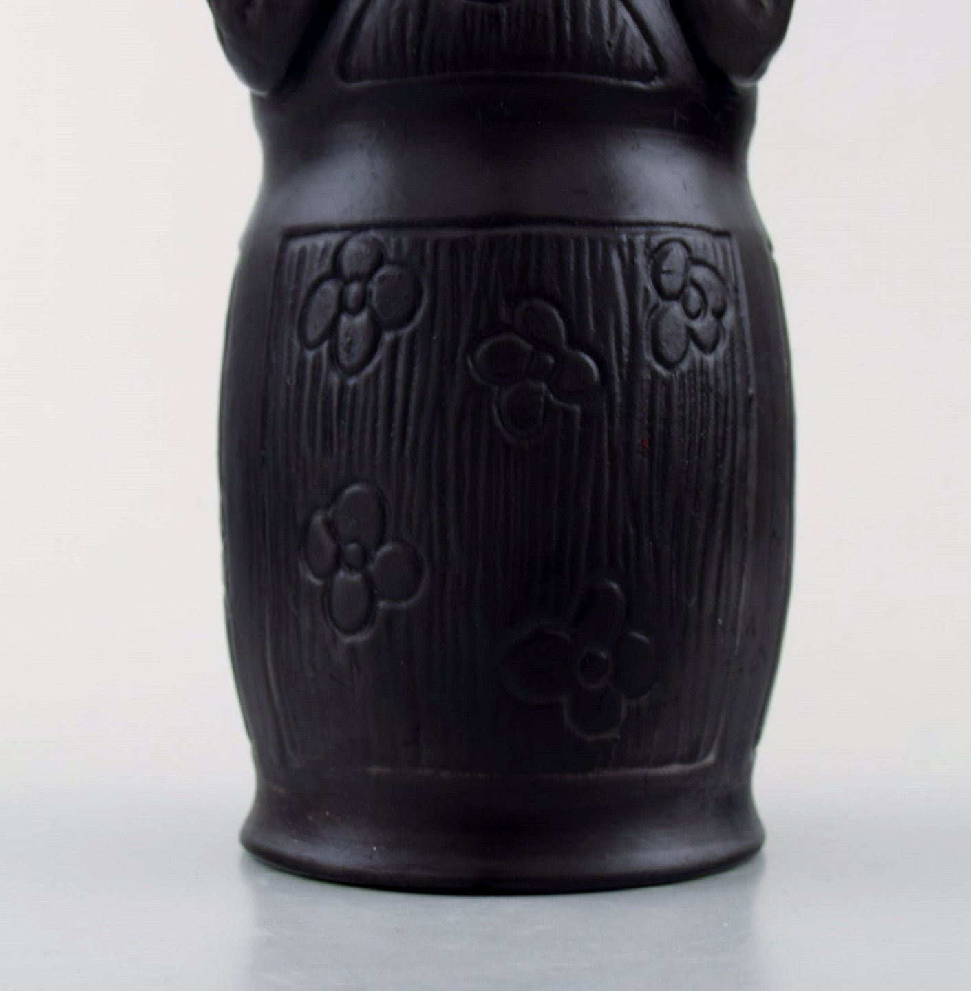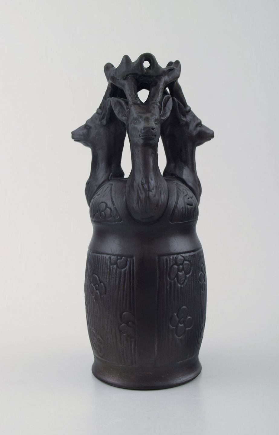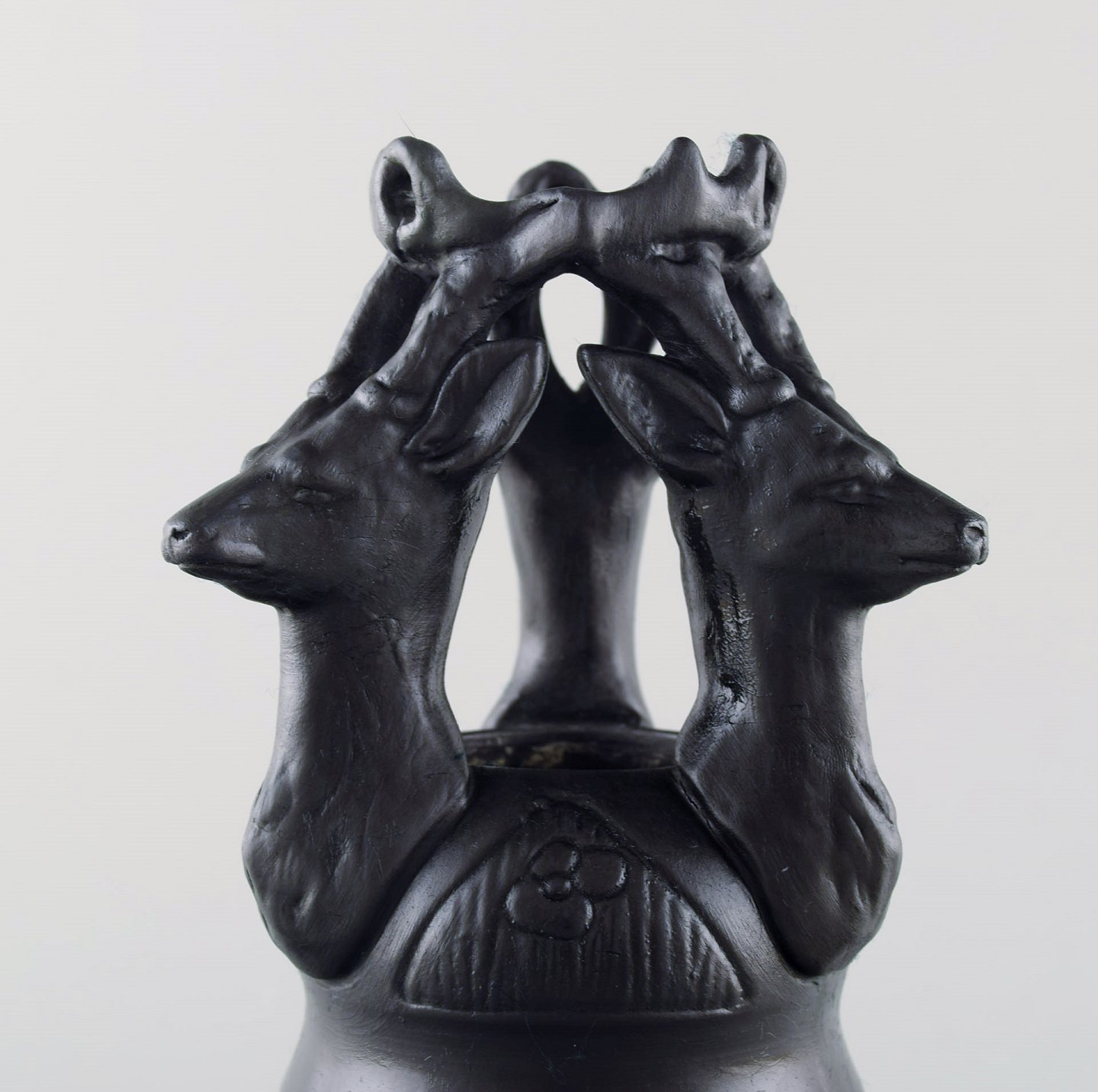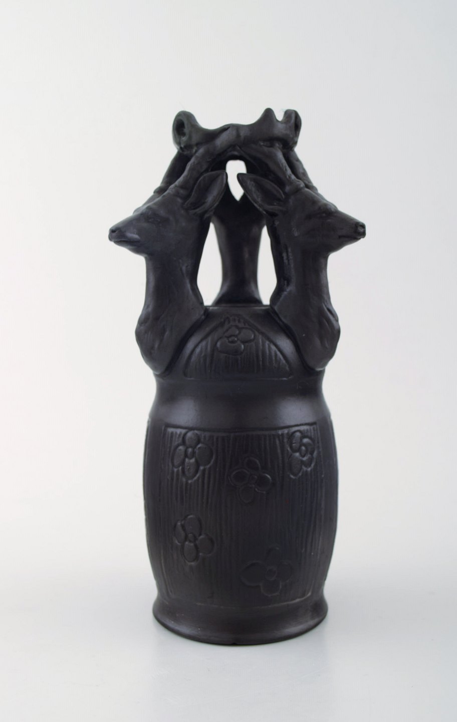 Hjorth skønvirke vase i terracotta, hjorte. Ca. 1900´erne. Måler : 19 cm. x 8 cm. I perfekt stand. Stemplet. Modelnummer 733