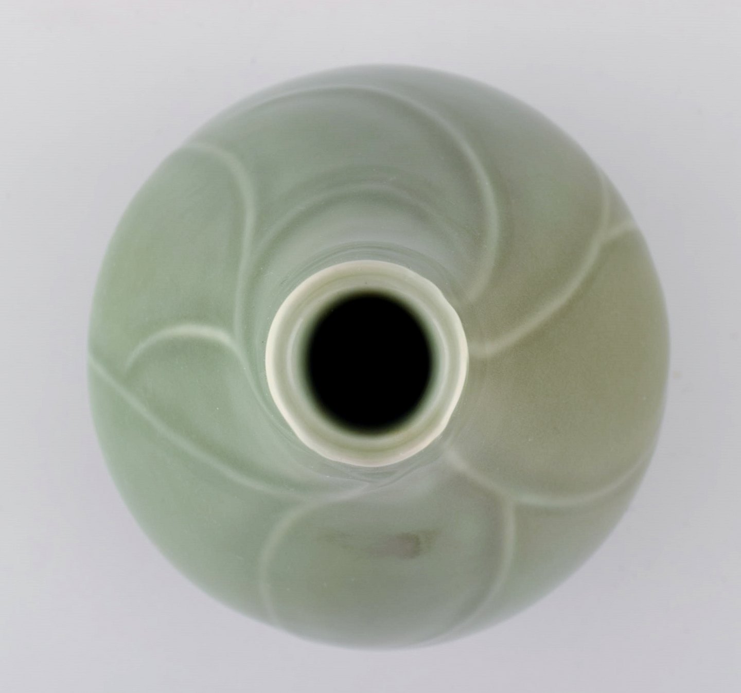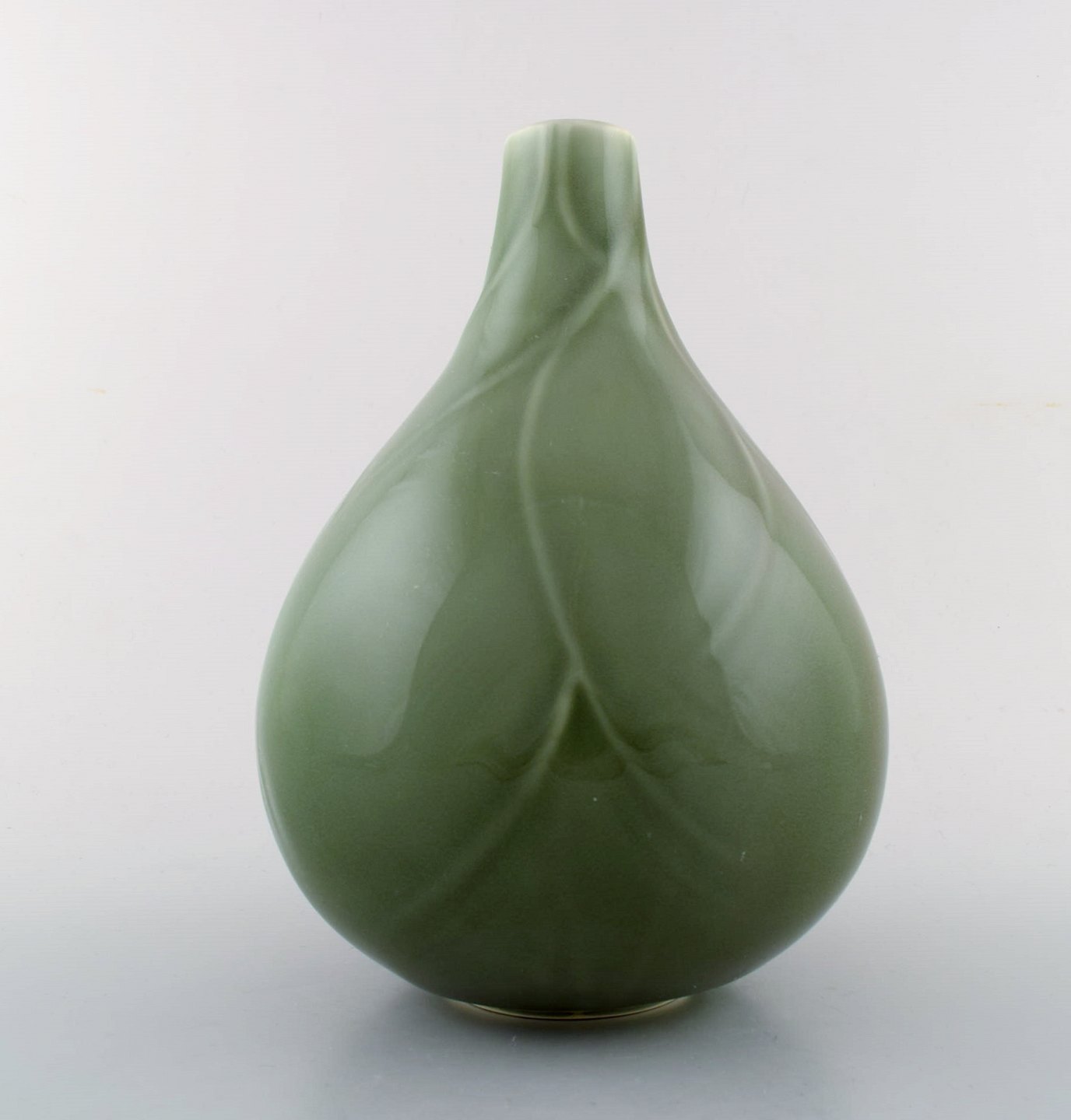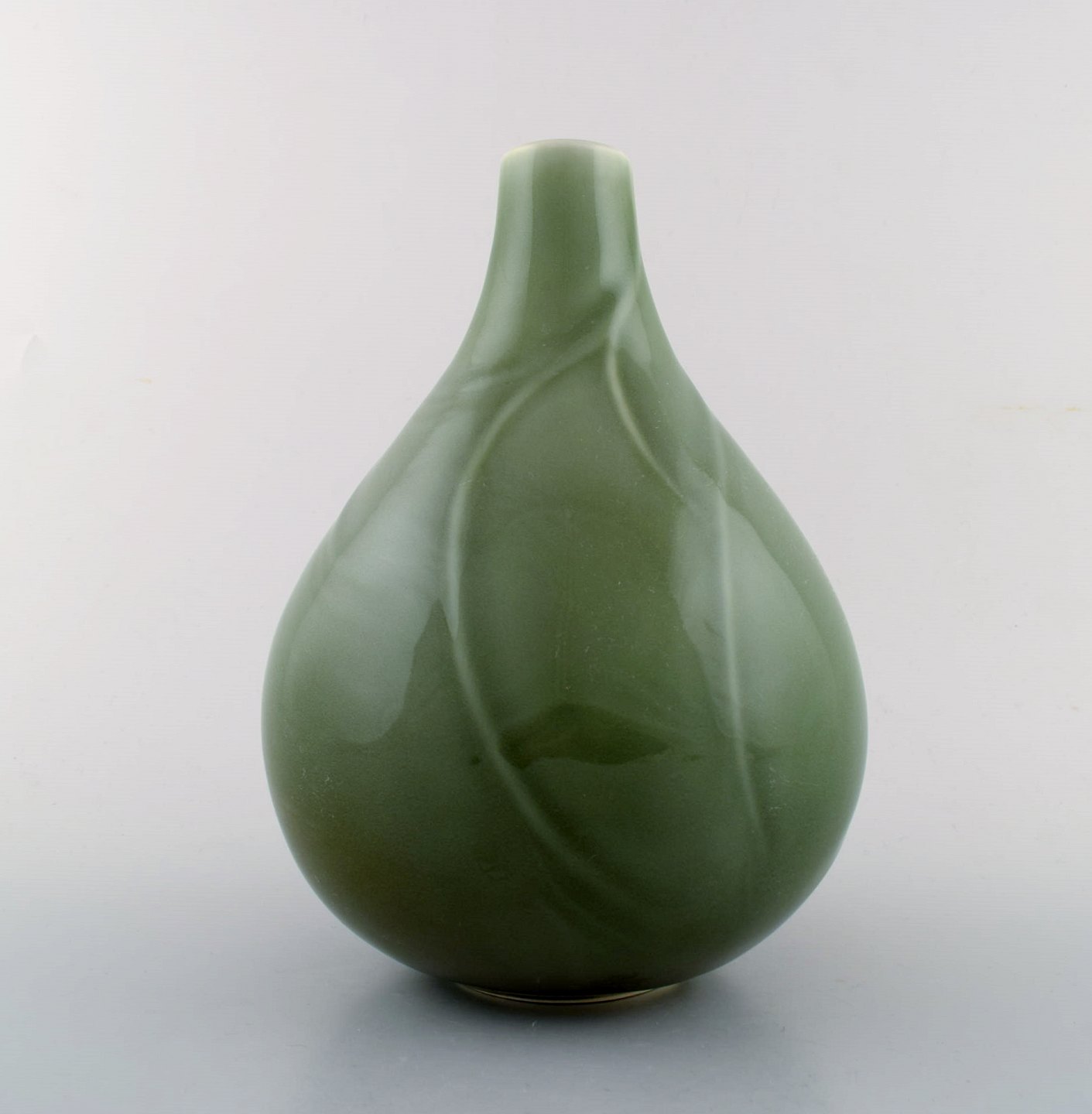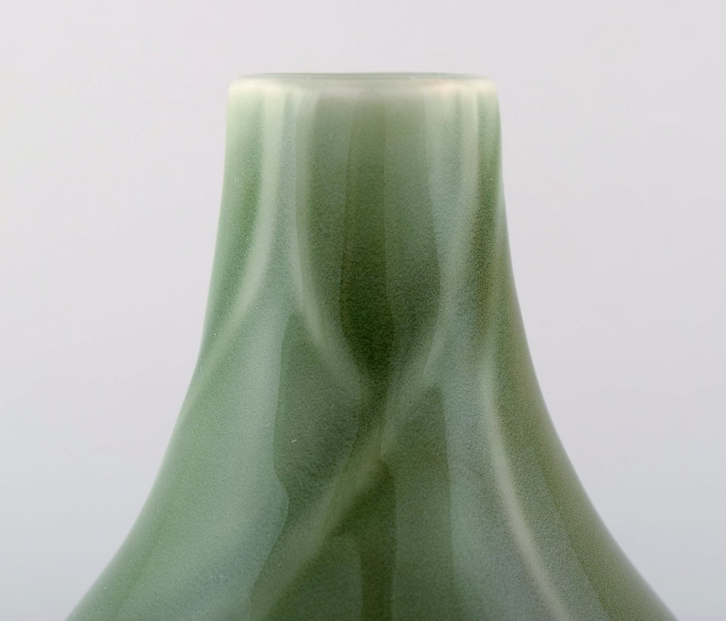 Axel Salto for Royal Copenhagen. Løgformet vase af stentøj med smal munding, dekoreret med celadonglasur. Signeret salto. Måler 25 cm x 17 cm. I perfekt stand. 1. Sortering.